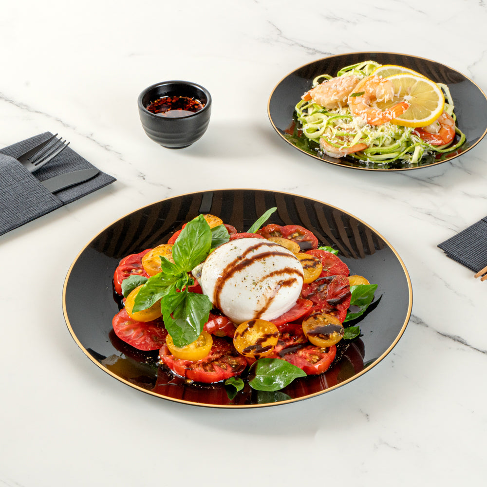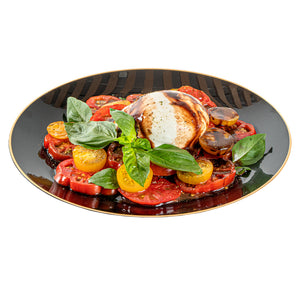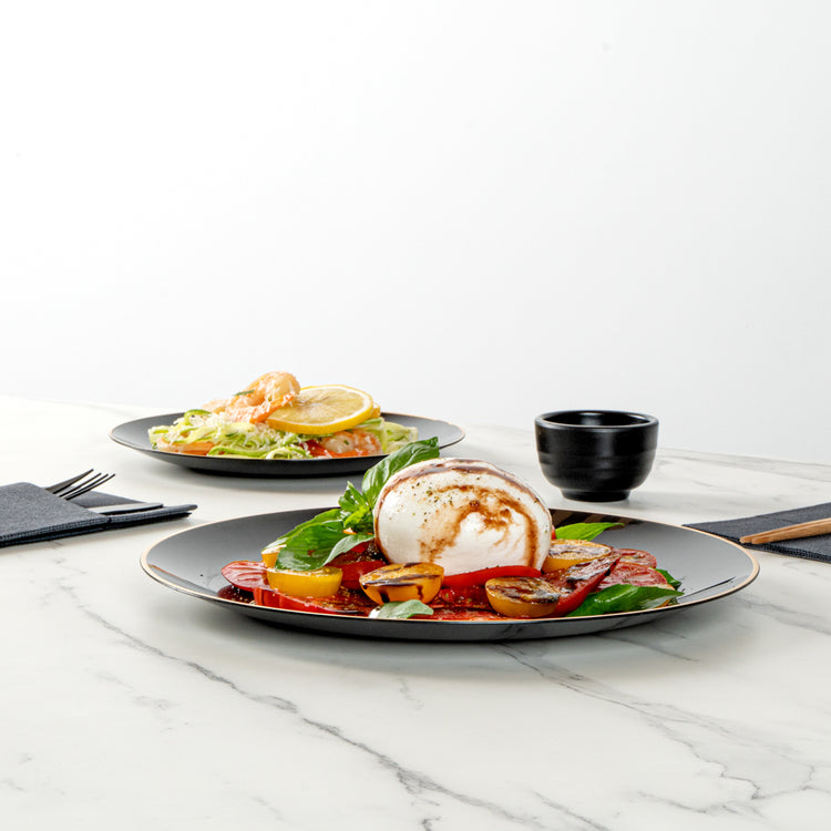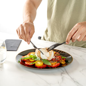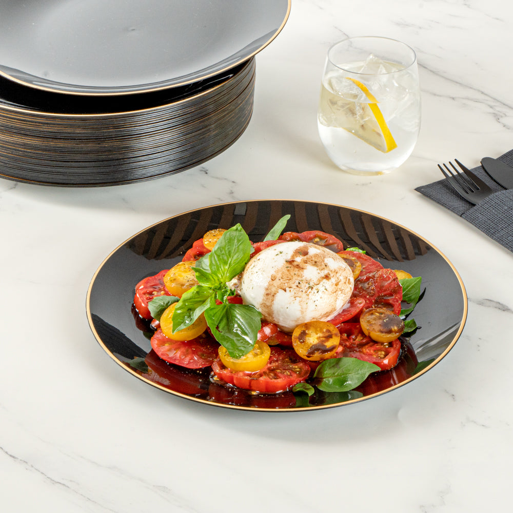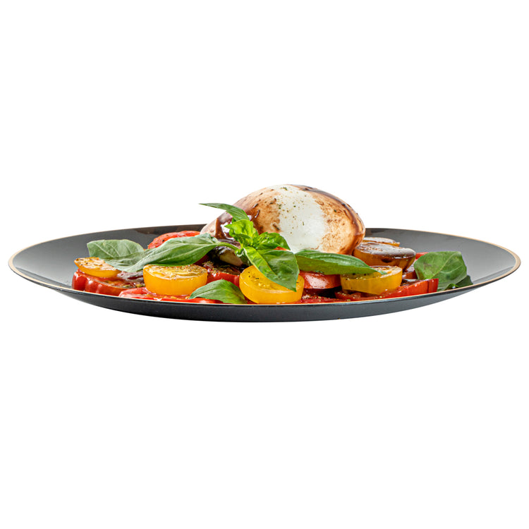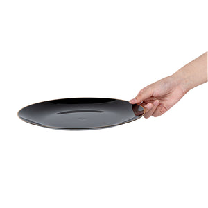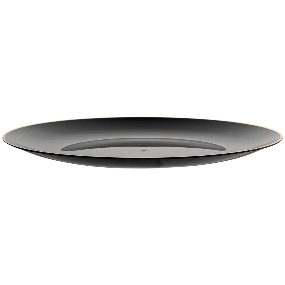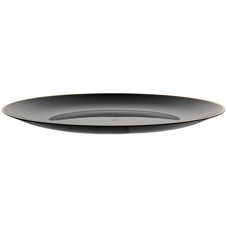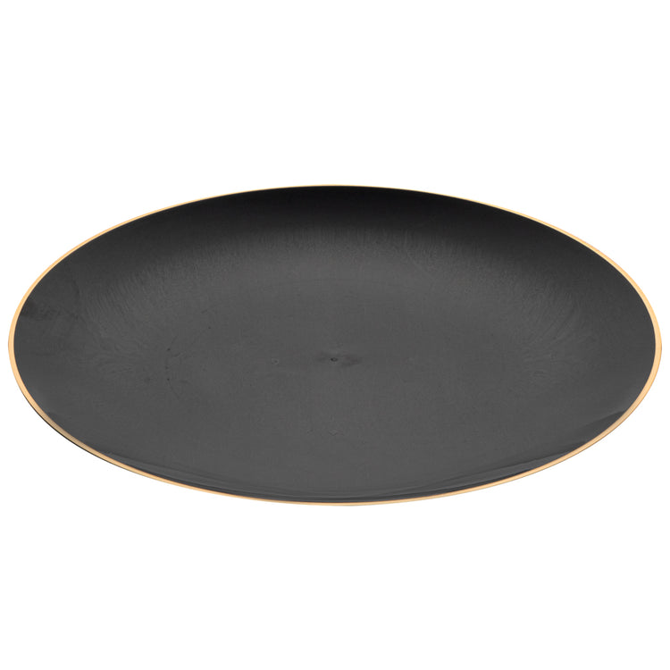 ROUND BLACK PLASTIC GOLD-RIMMED PLATE
