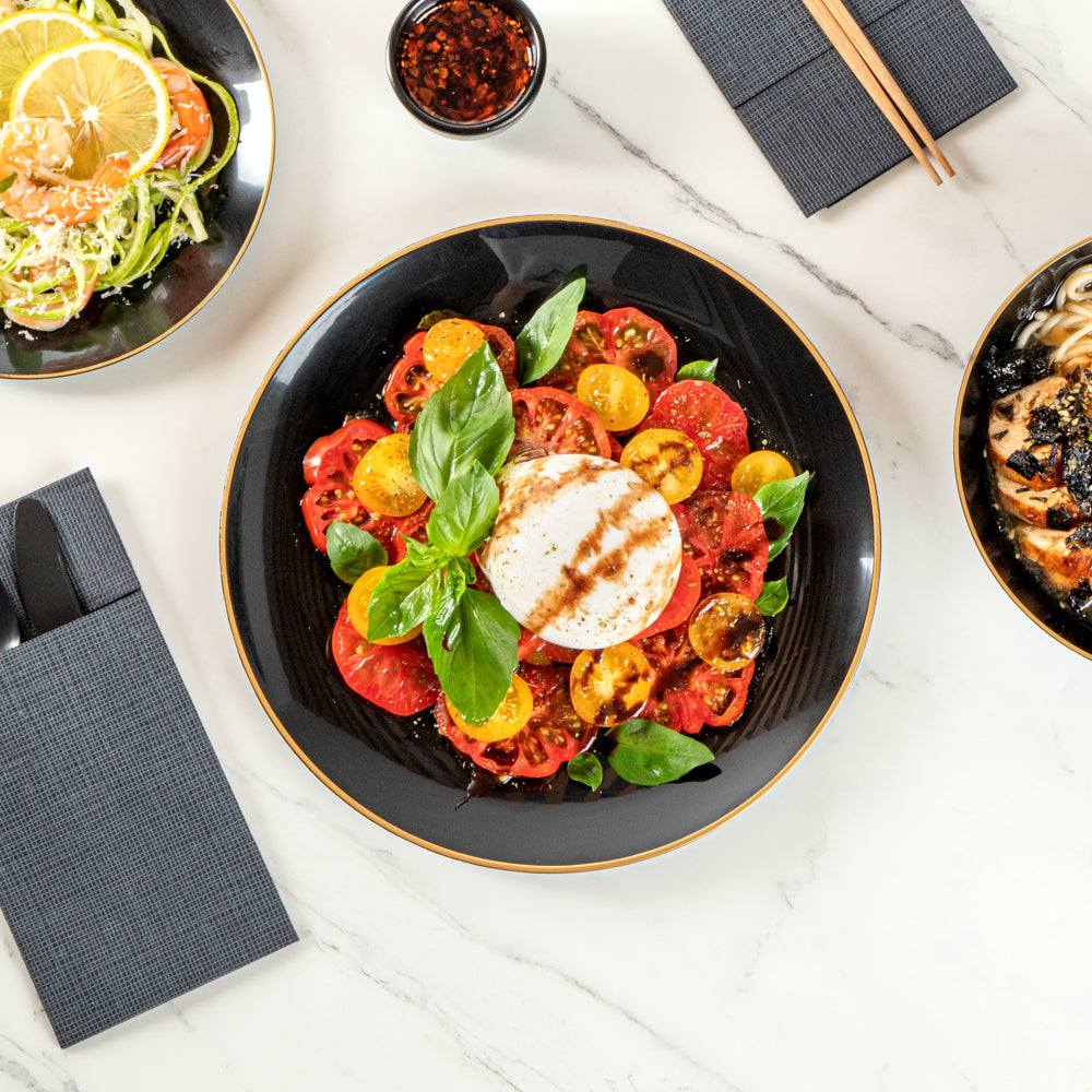 - Gold-rimmed design visually enhances the look of your tablescapes