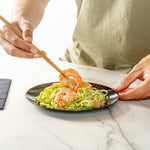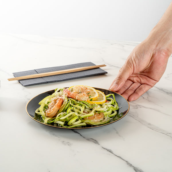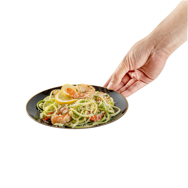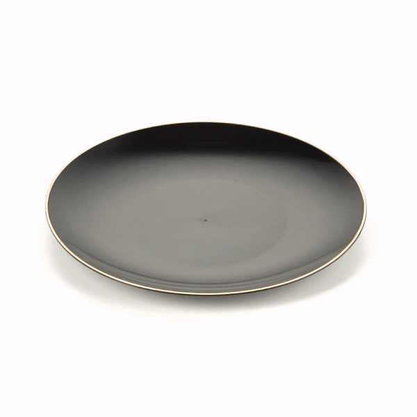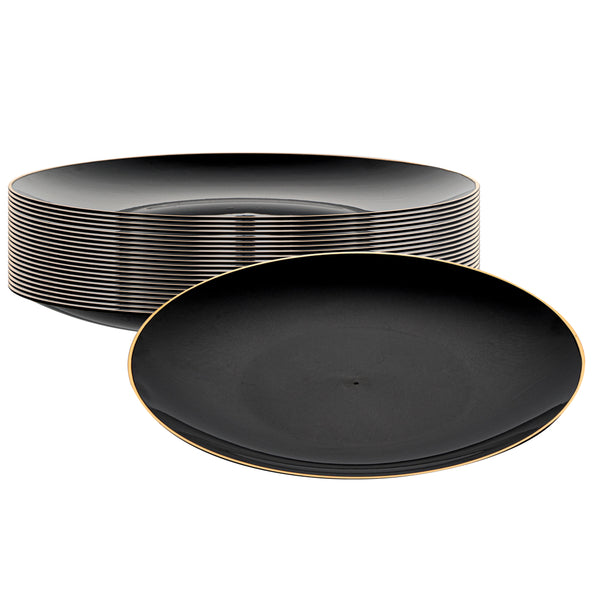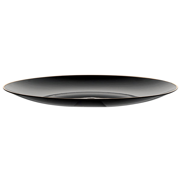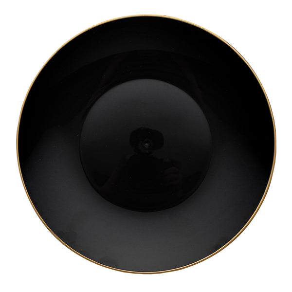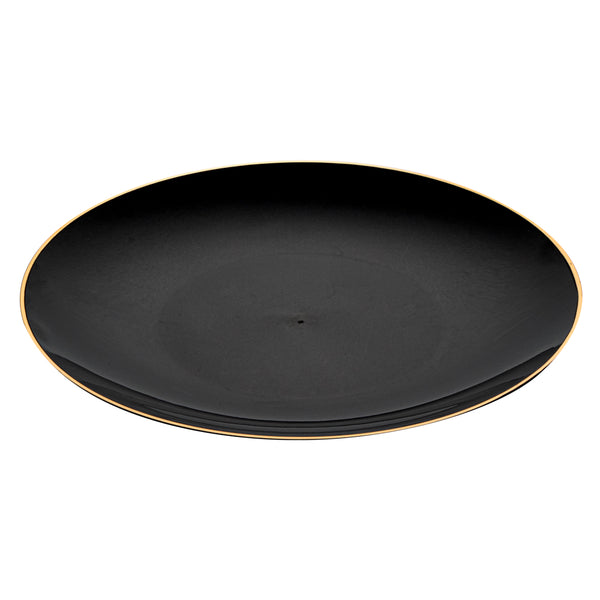 ROUND BLACK PLASTIC GOLD-RIMMED PLATE
