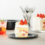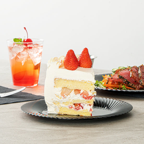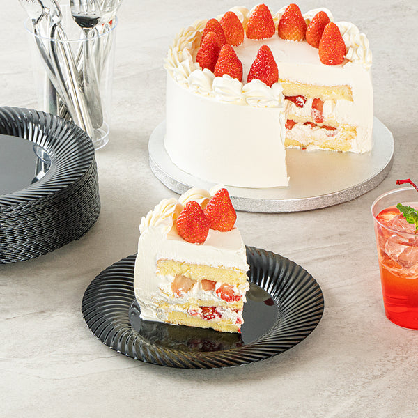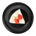 Create an elegant table setting with our Moderna Round Black Plastic Wave Plates. Crafted from durable PS plastic, these dinner plates are robust enough to handle even the heaviest foods. Adorned with an exquisite wave pattern, these plates bring a touch of elegance to your party decor. These premium plastic plates are easily recyclable, minimizing the environmental impact of your event. The heavy-duty design of these dinner plates ensures resistance to grease, keeping your dining experience mess-free. These patterned plastic plates can withstand temperatures up to 150F, ensuring optimal serving of warm and cold foods. To minimize washing dishes, these party plastic plates are disposable. Fashioned with a black finish, these unique plates elevate your food presentation. Measuring 7 inches in diameter, these white plastic plates are ideal for serving all kinds of starters, entrees, and desserts. Sold in a 40 count box.