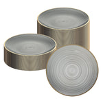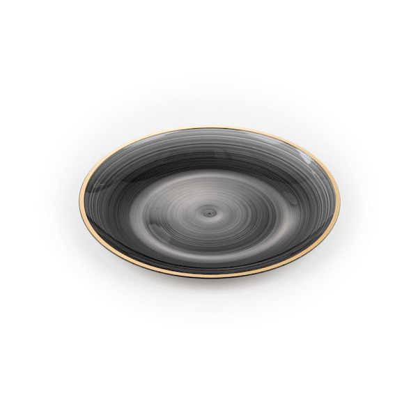 ROUND BLACK TRANSLUCENT PLASTIC GOLD-RIMMED PLATE - RIPPLED