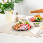 Enhance your event presentation with elegant disposable tableware. The Moderna Elegant Design Black Plastic Disposable Plates feature a stunning crystal design that elevates table settings, making them ideal wedding plates. Crafted from durable plastic, these plates measure 7.13 inches by 7.13 inches and are perfect for both intimate gatherings and large-scale events. The secure-grip texture ensures stability, minimizing spills and enhancing service efficiency at upscale dining experiences. As disposable plates, they streamline post-event cleanup, allowing your staff to focus on guest satisfaction rather than dishwashing. The striking black and gold plates add a touch of sophistication to any occasion, from weddings to corporate events. Choose these plates for a seamless blend of style and convenience, ensuring that your event leaves a lasting impression. Each order includes 100 Moderna Elegant Design Black Plastic Disposable Plates.