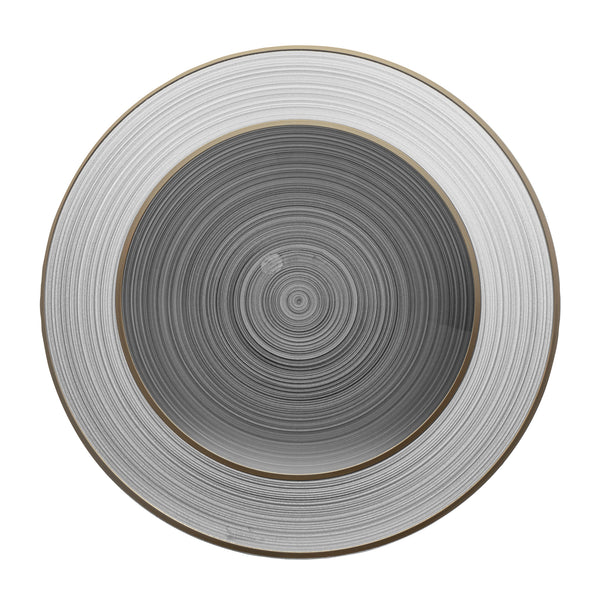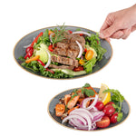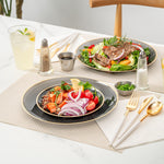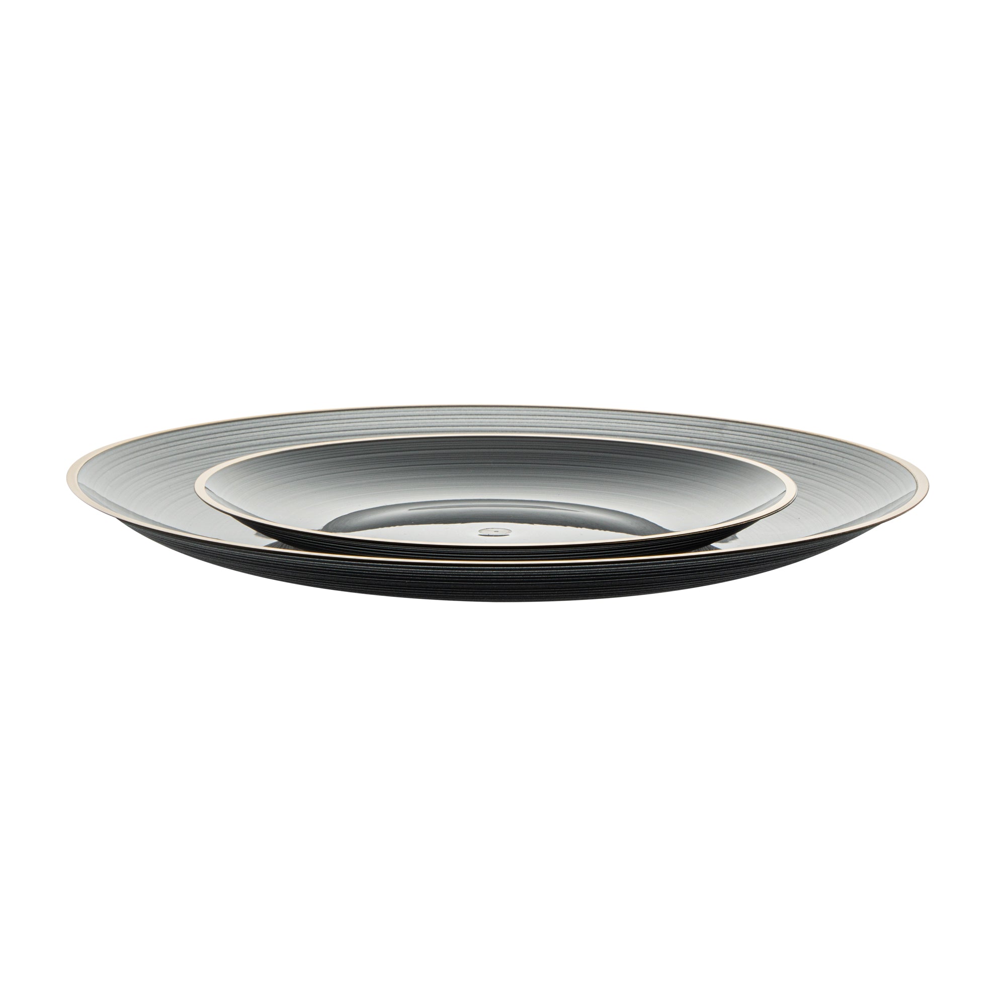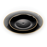 ROUND BLACK TRANSLUCENT PLASTIC GOLD-RIMMED PLATE SET - 7 1/4" AND 10"