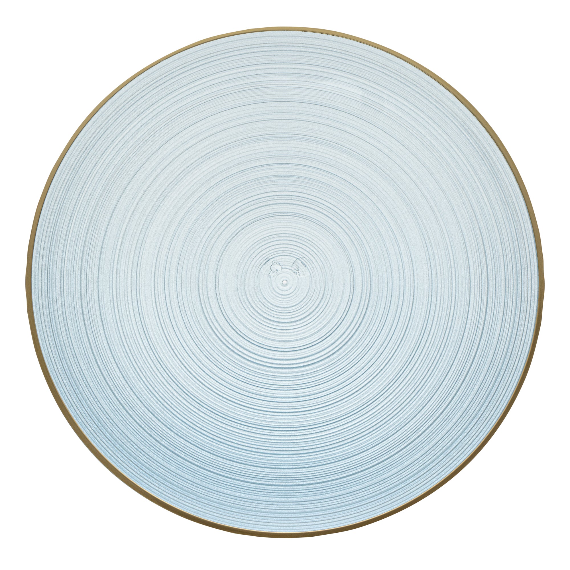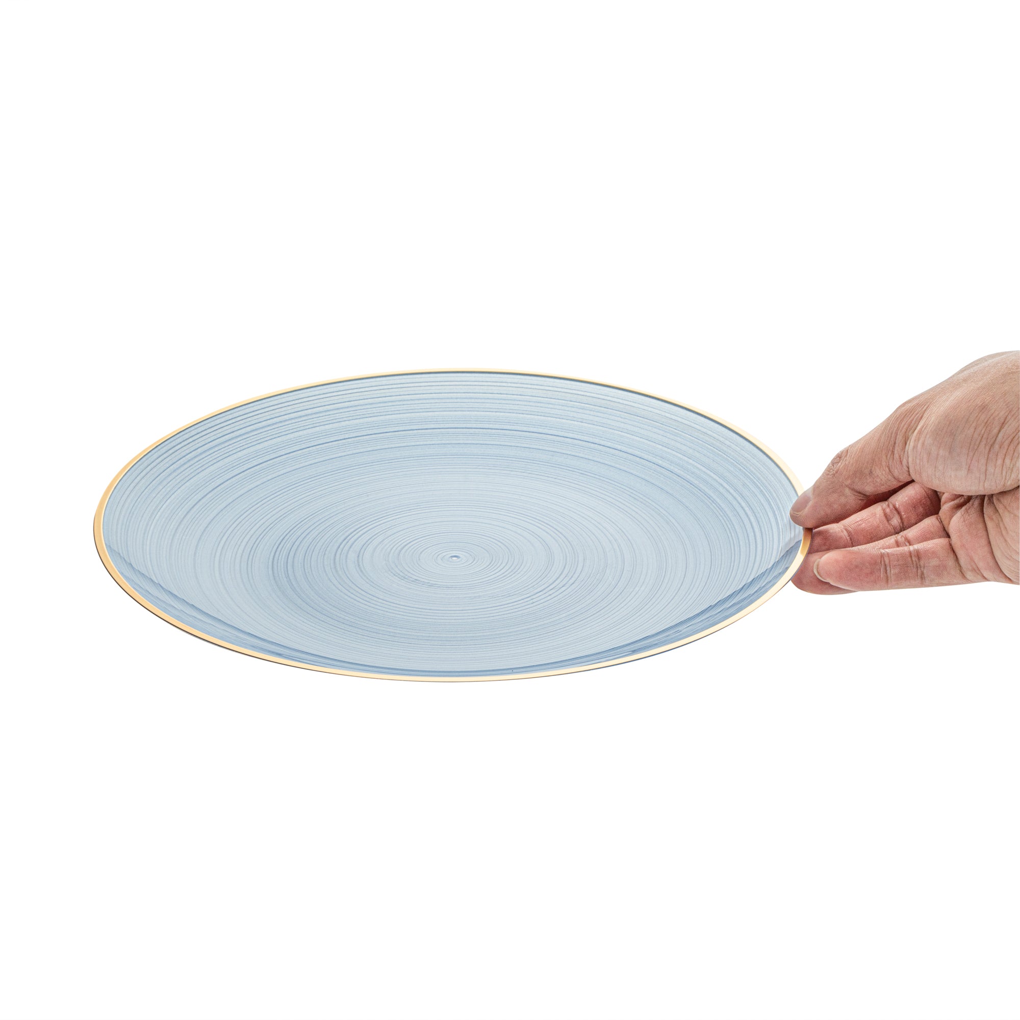 BLUE TRANSLUCENT PLASTIC GOLD-RIMMED PLATE - RIPPLED