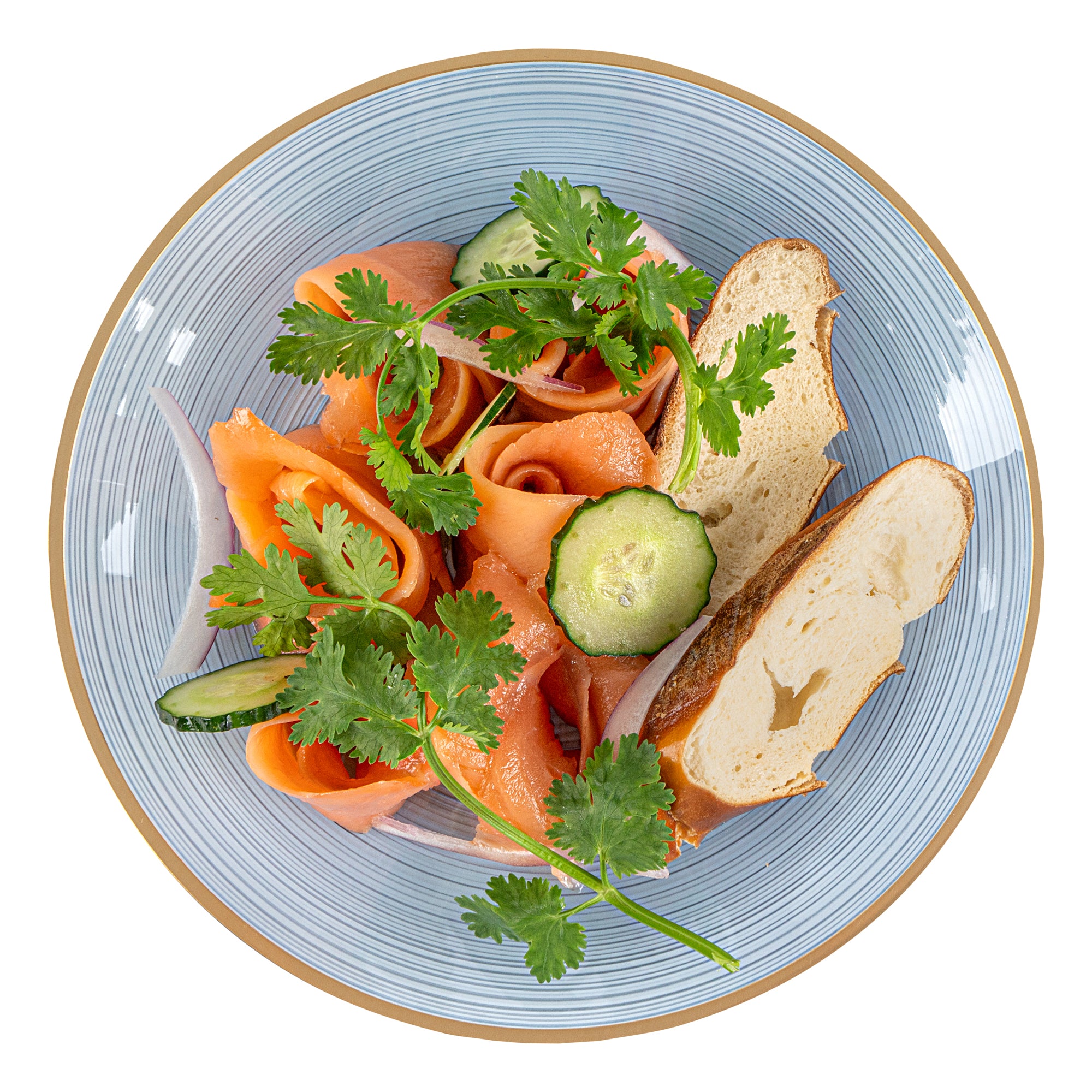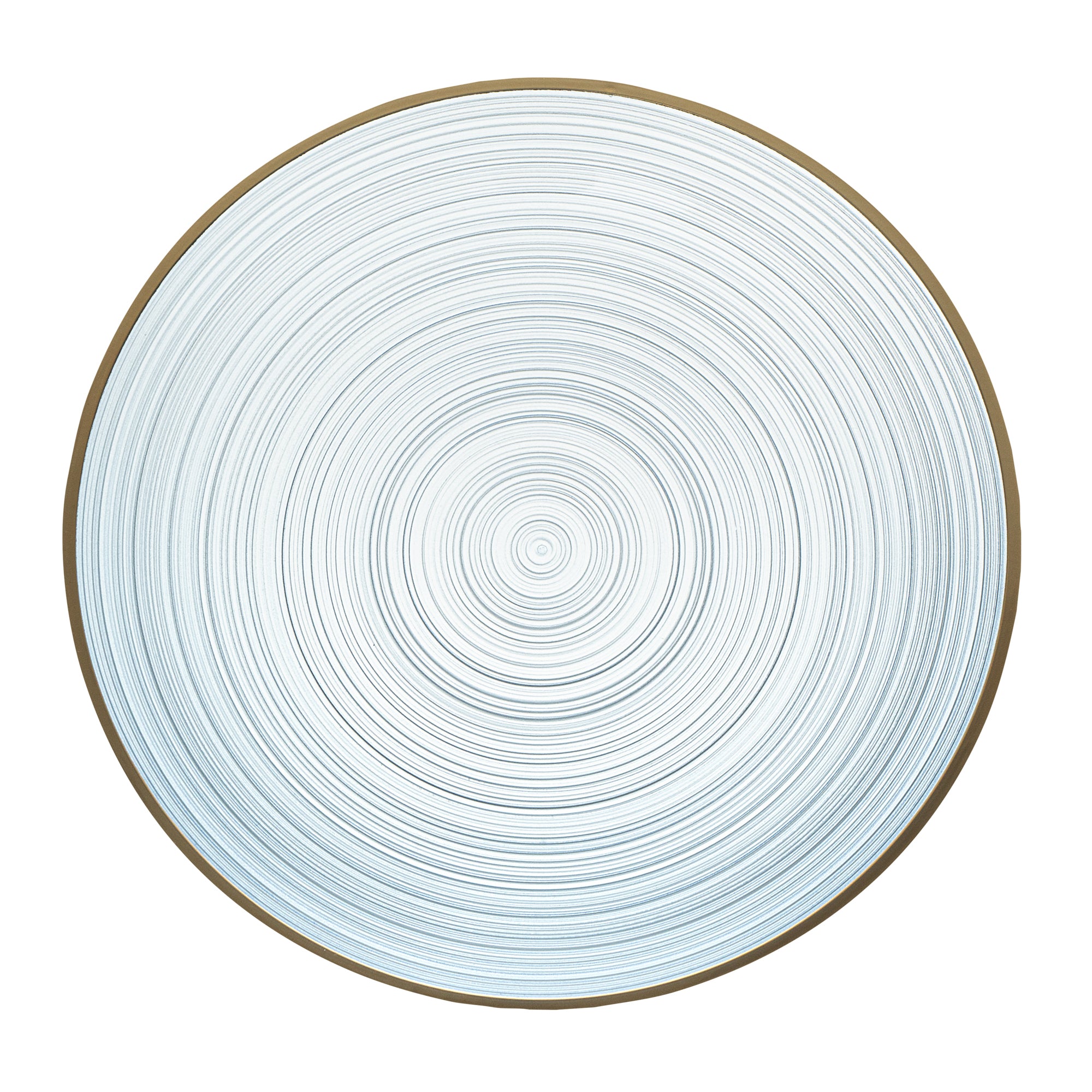 ROUND BLUE TRANSLUCENT PLASTIC GOLD-RIMMED PLATE - RIPPLED