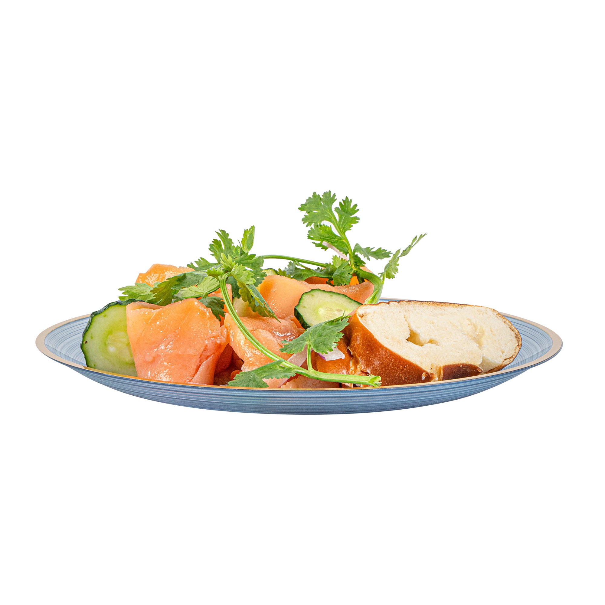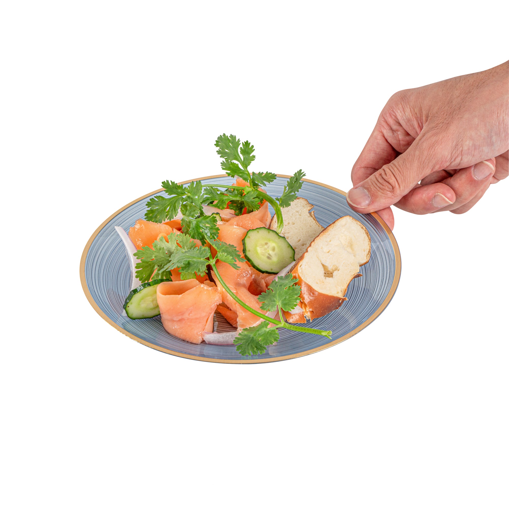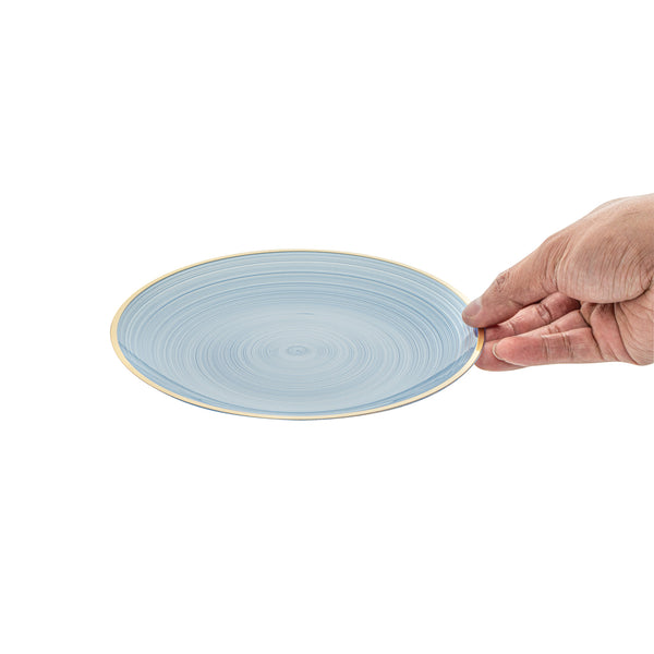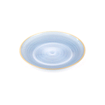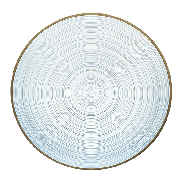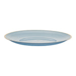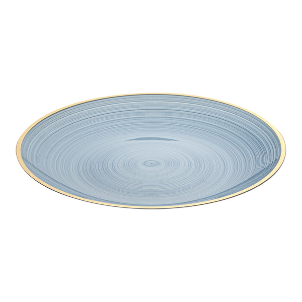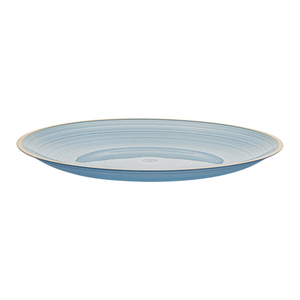 ROUND BLUE TRANSLUCENT PLASTIC GOLD-RIMMED PLATE - RIPPLED