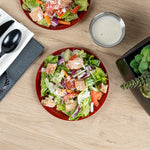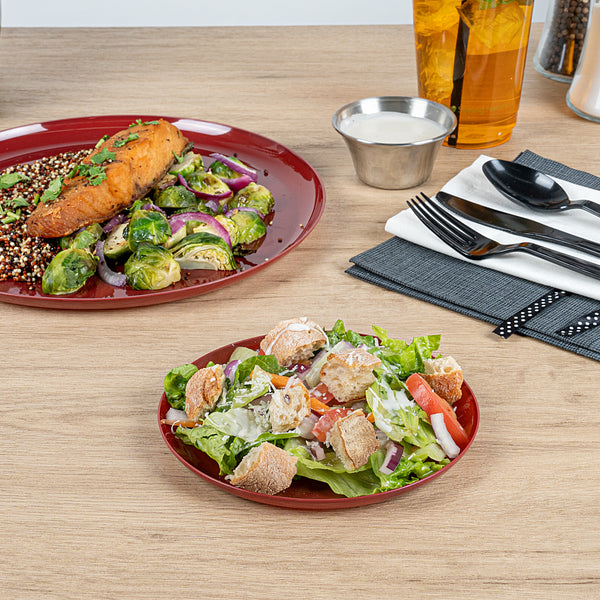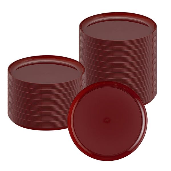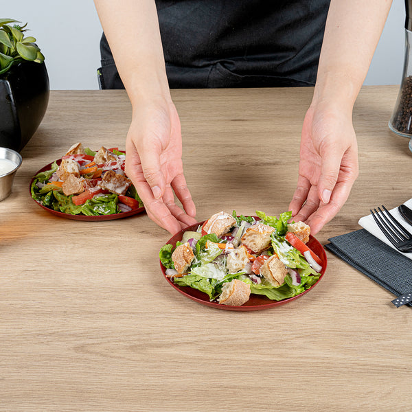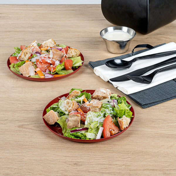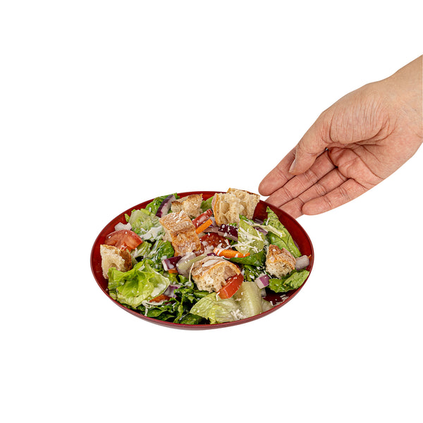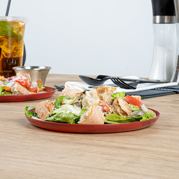 Enhance your dining events with elegant and functional tableware. The Moderna Red Plastic Plate is designed with a striking burgundy finish, providing an exquisite backdrop that elevates the presentation of any dish, making it a perfect disposable plastic plate for upscale dining. Measuring 6.3 inches in length and width, this plastic serving dish offers versatility, accommodating both warm and cold food items with ease. Its greaseproof construction ensures that each red dinner plate maintains its pristine appearance while preventing leakage, thereby enhancing the dining experience. Crafted from recyclable plastic, it supports sustainability initiatives within foodservice operations, offering an eco-friendly alternative to traditional disposable options. Its durable nature ensures reliability during service, making it a dependable choice for caterers and event planners. Choose the Moderna Red Plastic Plate for a balance of style and practicality in your food presentations. Each order includes 40 Moderna Red Plastic Plates.