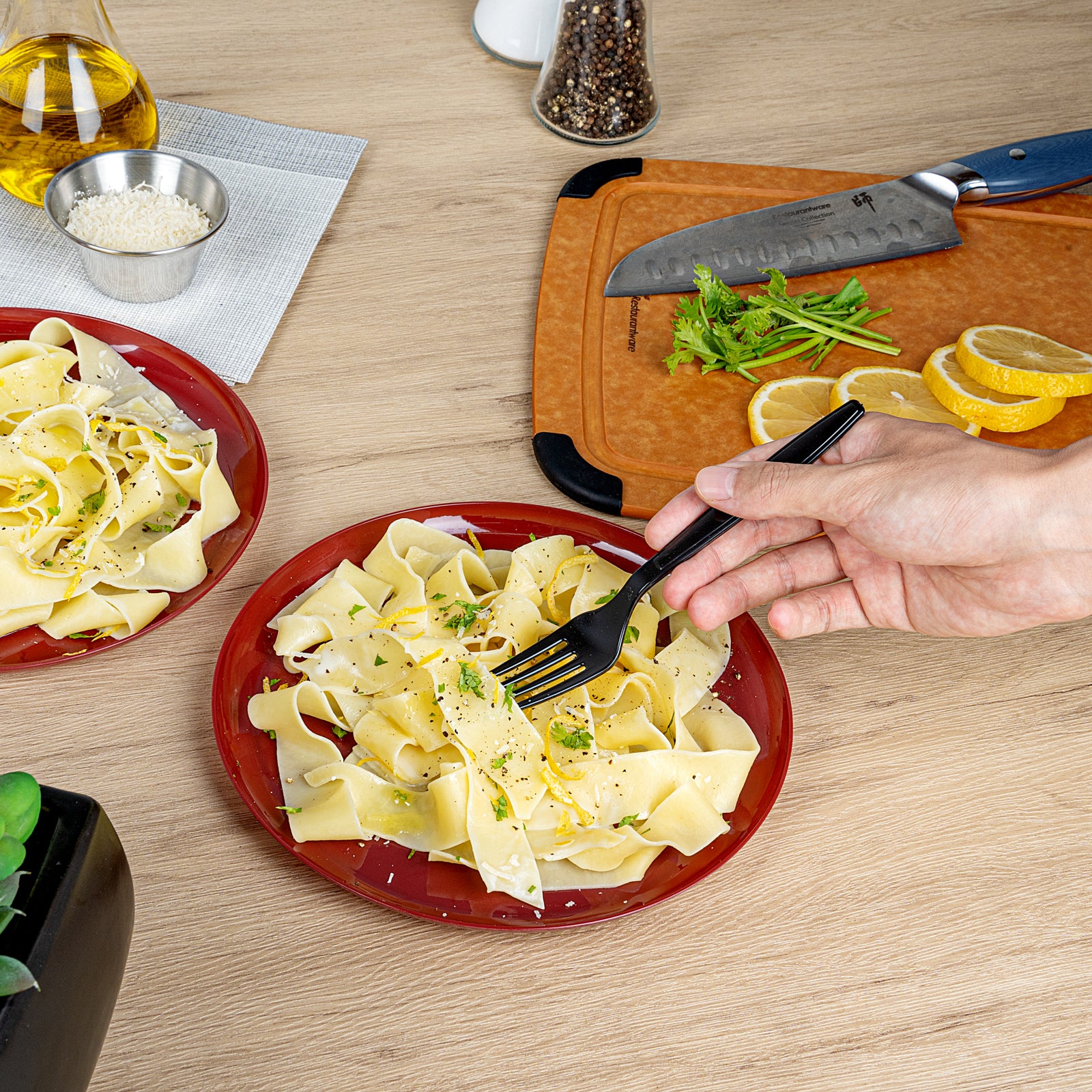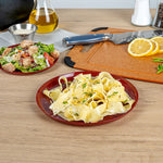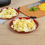 Serve every dish with style and sustainability. Moderna Versatile Plastic Dinner Plates are designed with a recyclable plastic construction that helps reduce waste in foodservice operations, making them an eco-friendly alternative to traditional options. These plates are both cold and hot food friendly, accommodating a wide range of menu offerings with ease, which makes them the perfect choice as a disposable serving plate for any event or restaurant service. The elegant burgundy finish enhances the presentation of plated dishes, creating an attractive backdrop that elevates the dining experience. Measuring 8.6 inches by 8.6 inches, these plates are crafted from durable plastic, ensuring they remain greaseproof and reliable throughout service, while their reusable nature allows for versatile use as a reusable plastic plate. Invest in a solution that combines practicality with sophistication. Each order includes 200 Moderna Versatile Plastic Dinner Plates.