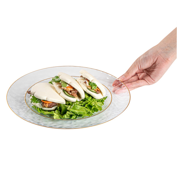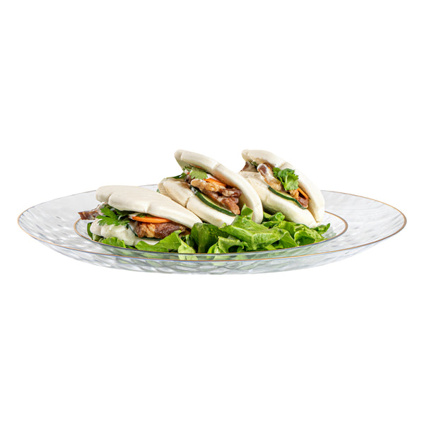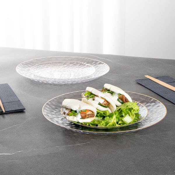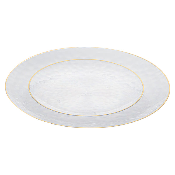 ROUND CLEAR PLASTIC GOLD-RIMMED PLATE SET -HAMMERED, 7" AND 10" PLATES