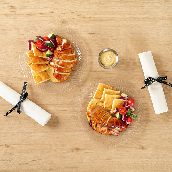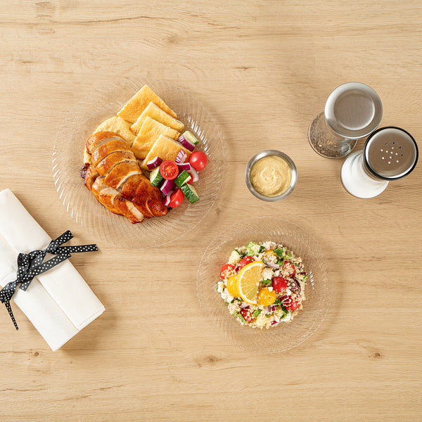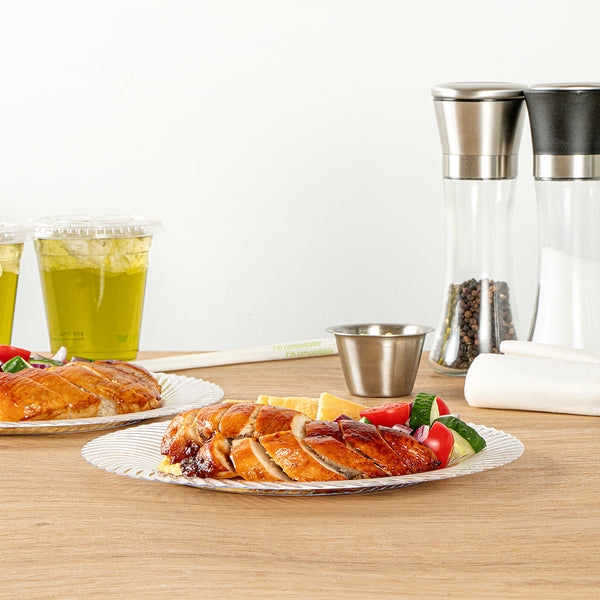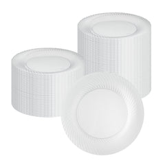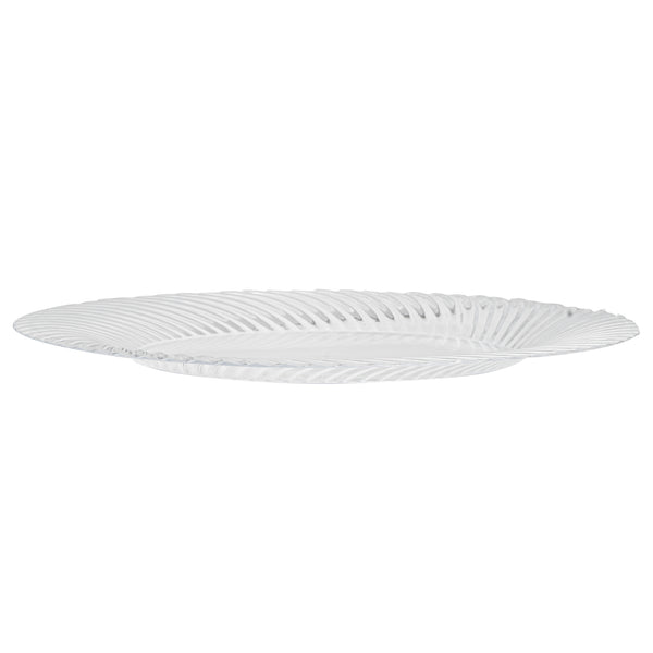 Elevate your table setting with our Moderna Round Clear Plastic Wave Plates. Crafted from durable PS plastic, these dinner plates are robust enough to handle even the heaviest foods. Adorned with an exquisite wave pattern, these plates bring a touch of elegance to your party decor. These premium plastic plates are easily recyclable, minimizing the environmental impact of your event. The heavy-duty design of these dinner plates are greaseproof, keeping your dining experience mess-free. These clear plastic plates can withstand temperatures up to 150F, ensuring optimal serving of warm and cold foods. To minimize washing dishes, these party plastic plates are disposable. Fashioned with a clear finish, these unique plates elevate your food presentation. Measuring 9 inches in diameter, these disposable plates for wedding are ideal for serving all kinds of starters, entrees, and desserts. Shipped in a 40 count box.