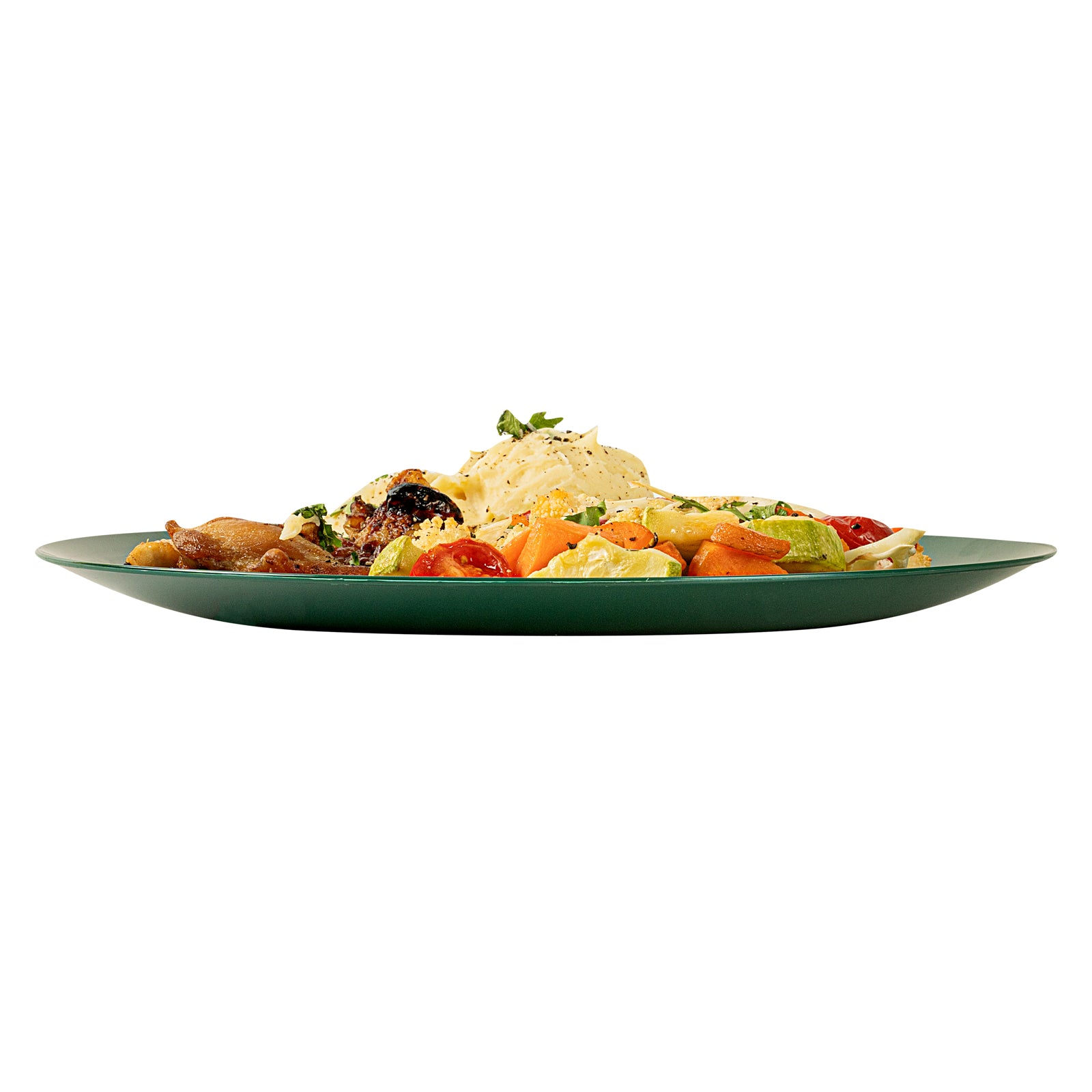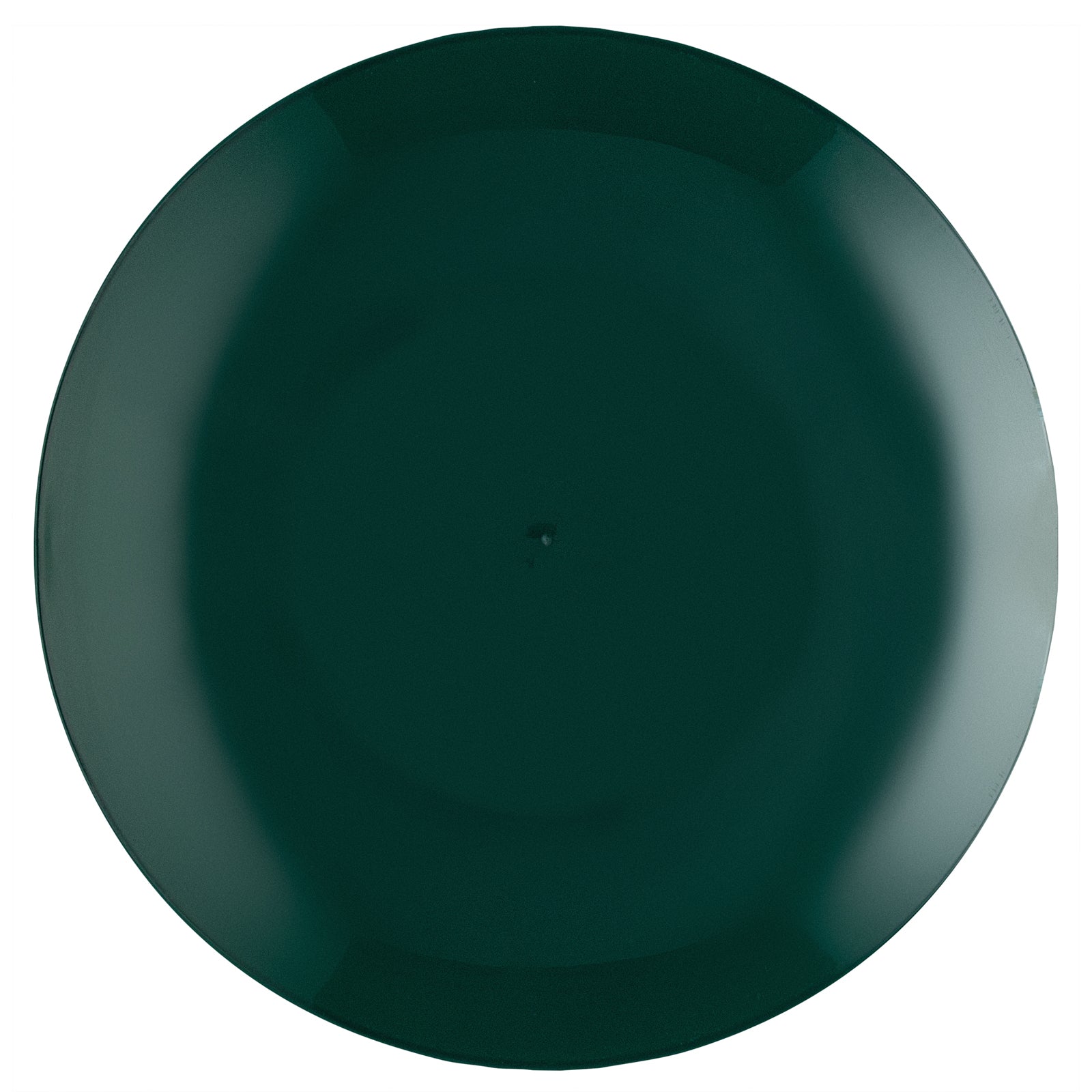 Bring a burst of color to your table with our Moderna Round Forest Green Plastic Plates. Made with durable PS plastic, these fancy dinner plates offer exceptional strength and resilience. Recyclable, these premium plastic plates, help minimize your event's carbon footprint. These forest green plastic plates are engineered to maintain their integrity even at temperatures up to 150F, making them suitable for serving warm and cold foods. Designed with greaseproof properties, these dinner plates maintain a spotty appearance during meals. To simplify clean-up after events, these plastic plates are designed to be disposable, eliminating the need for tedious washing. These party plastic plates, adorned with a forest green finish, infuse a touch of attractive elegance into your table setting. Measuring 10.25 inches in diameter, these elegant plastic plates are ideal for serving all kinds of starters, entrees, and desserts. Shipped in a 200 count box.