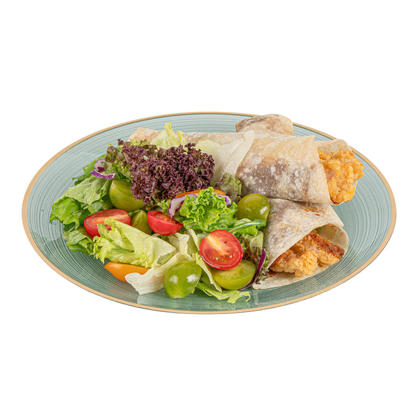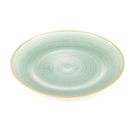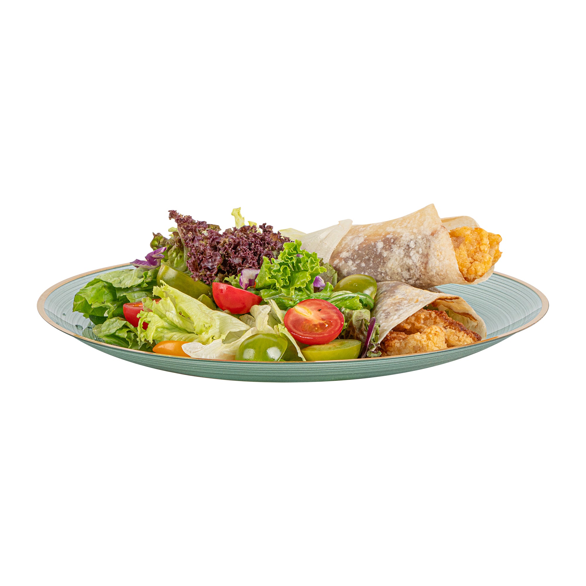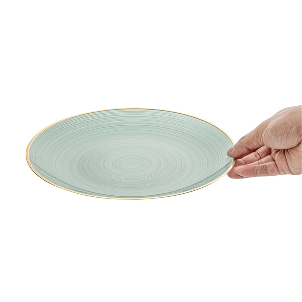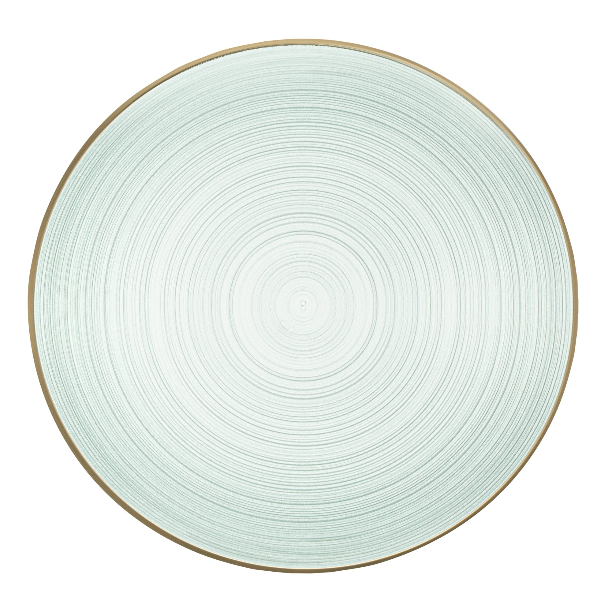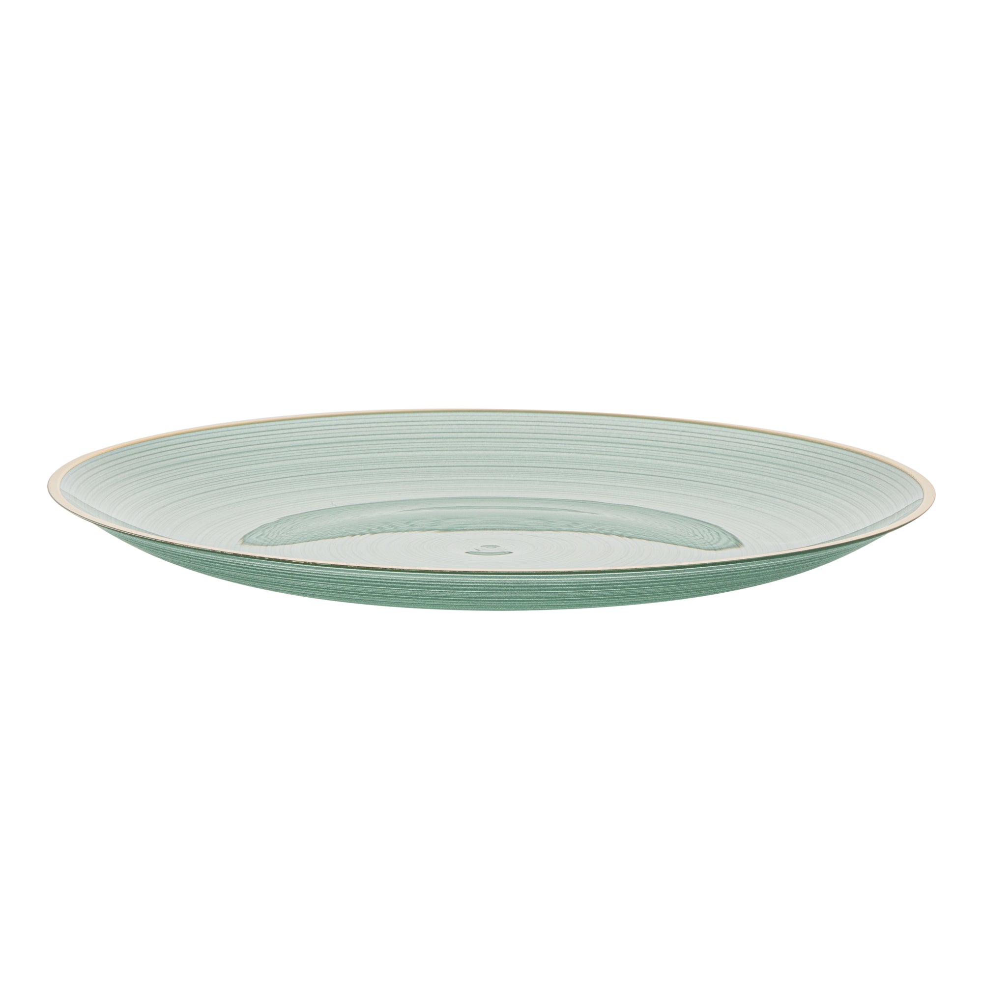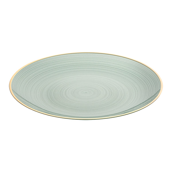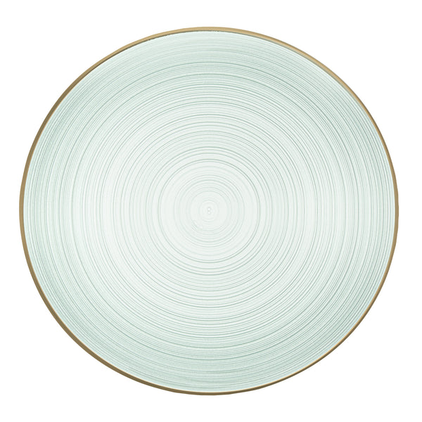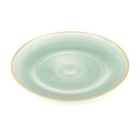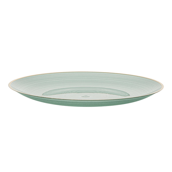 ROUND GREEN TRANSLUCENT PLASTIC GOLD-RIMMED PLATE - RIPPLED