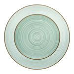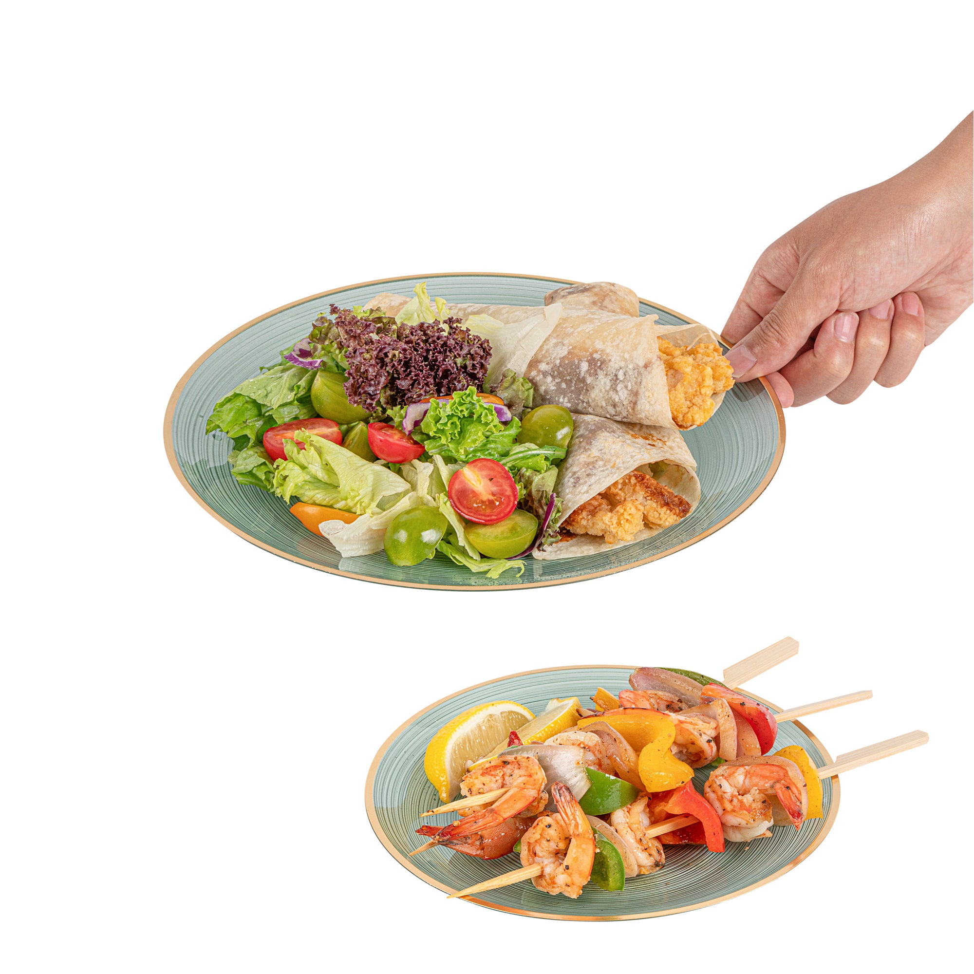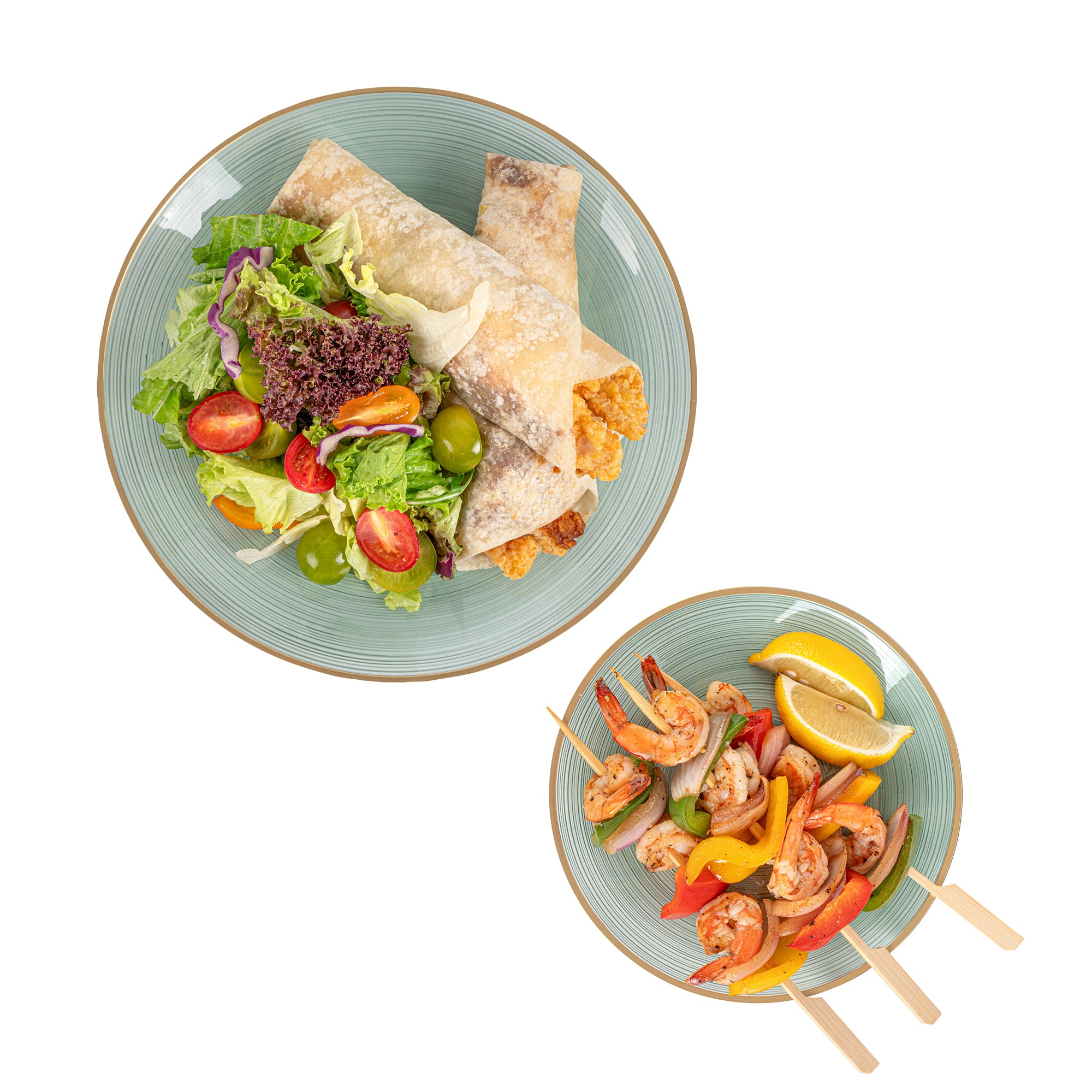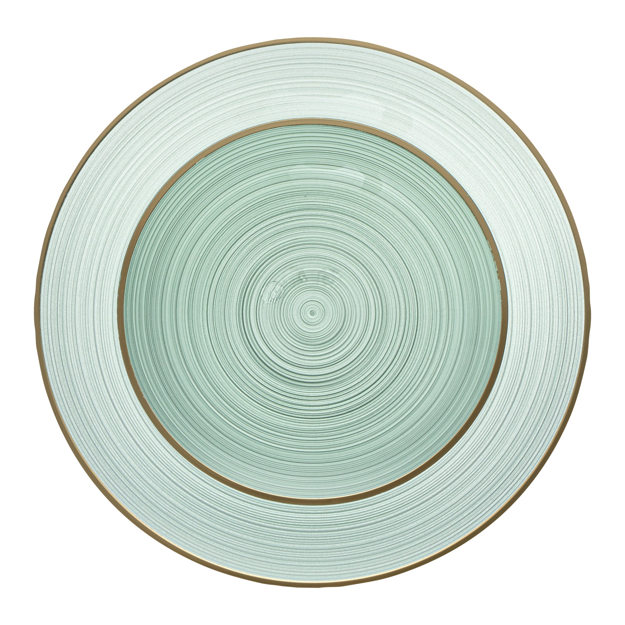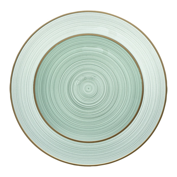 ROUND GREEN TRANSLUCENT PLASTIC GOLD-RIMMED PLATE SET - 7 1/4" AND 10"