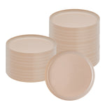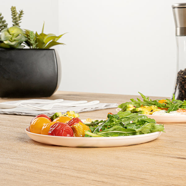 Enhance dining presentations with elegant tableware. The Moderna Plastic Stone Plate in a light pink finish measures 6.3 inches by 6.3 inches and offers a versatile design that supports both hot and cold dishes, making it an ideal choice for diverse foodservice applications. This elegant plastic plate is crafted from recyclable plastic, providing an environmentally conscious alternative to traditional disposable dinner plates, thus reducing waste in your operations. The sophisticated light pink hue highlights plated culinary creations, adding a touch of refinement to any setting. Its greaseproof surface ensures that even the most indulgent dishes are presented without unsightly stains, while its durable construction withstands the demands of busy service environments. Choose these plates to elevate your service and make a sustainable impact in your restaurant's operations. Each order includes 200 Moderna Plastic Stone Plates.