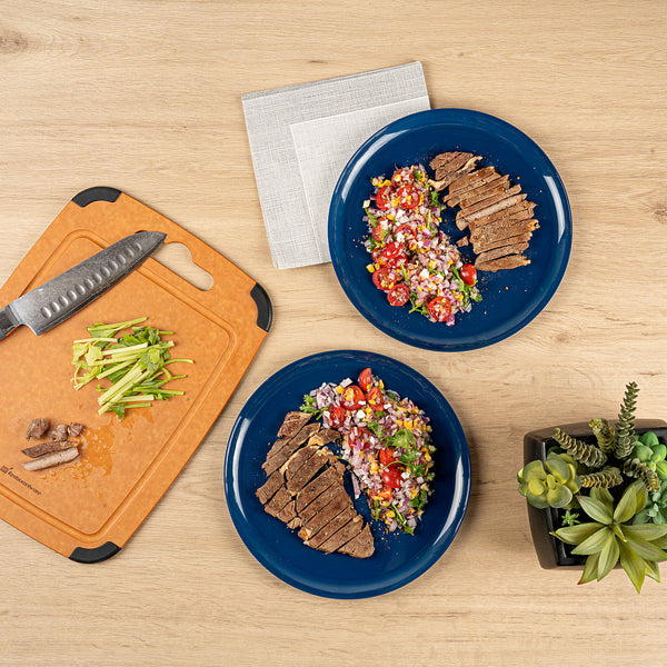 Elevate your dining experience with chic and sustainable plateware. The Moderna Blue Plastic Plate combines a midnight blue finish with recyclable plastic, enhancing the presentation of your culinary creations while supporting sustainability goals in operations. This elegant disposable plate boasts a versatile design that accommodates both hot and cold dishes, making it perfect for upscale events where style and functionality are paramount. Measuring 10.63 inches in length and width, it's an ideal choice for chefs seeking a consistent and professional presentation. The durable, greaseproof construction ensures that your meals remain pristine, offering a reliable solution for any catering or restaurant setting. Choose these reusable plastic plates to impress guests while effortlessly maintaining environmental responsibility. Each order includes 40 Moderna Blue Plastic Plates.