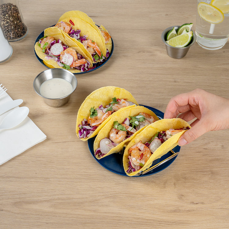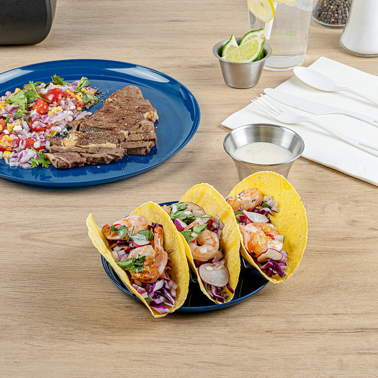 Present your culinary creations on an exquisite stage with our Moderna Blue Plastic Plate. This versatile plastic plate measures 6.3 inches in length and width, making it perfect for serving an array of warm and cold dishes, enhancing its usability across diverse foodservice operations. Constructed from plastic, this party plate not only provides a robust and greaseproof dining solution but also supports your commitment to sustainable practices. The stunning midnight blue finish of this elegant dinner plate elevates the presentation of entrees and side dishes, ensuring a visually appealing dining experience for your patrons. Ideal for upscale events or casual gatherings, this plate is both cold food friendly and hot food friendly, offering reliable performance under various conditions. Elevate your table settings with our practical and stylish plate, designed to impress and perform. Each order includes 200 Moderna Blue Plastic Plates.