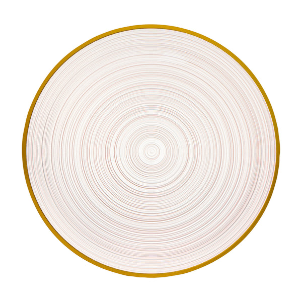 ROUND PINK TRANSLUCENT PLASTIC GOLD-RIMMED PLATE - RIPPLED