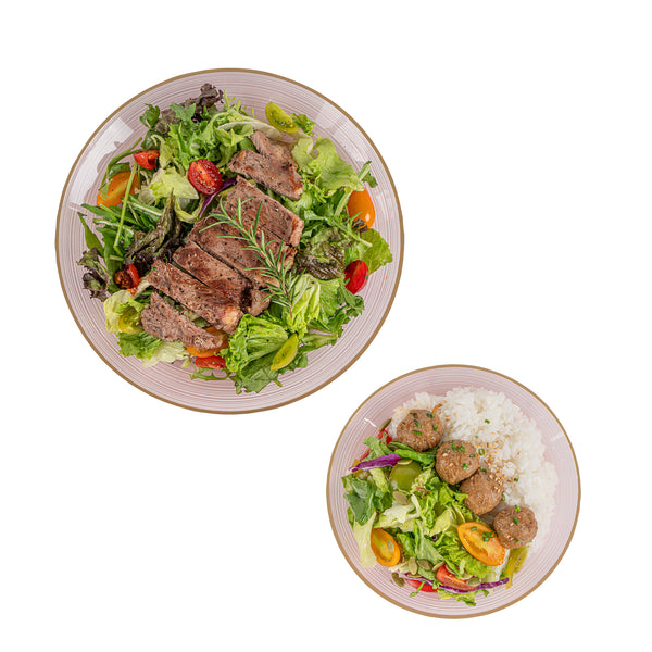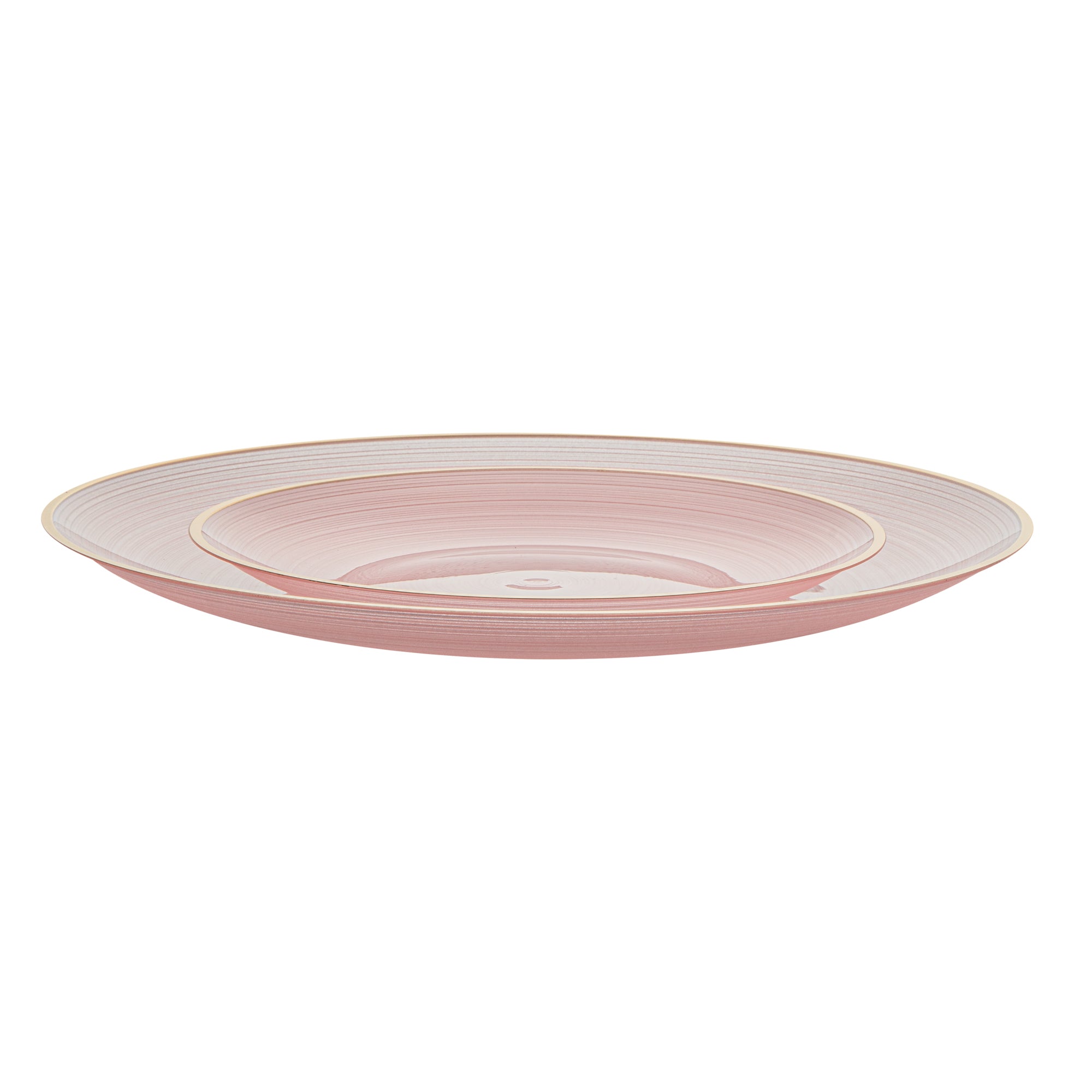 ROUND PINK TRANSLUCENT PLASTIC GOLD-RIMMED PLATE SET - 7 1/4" AND 10"