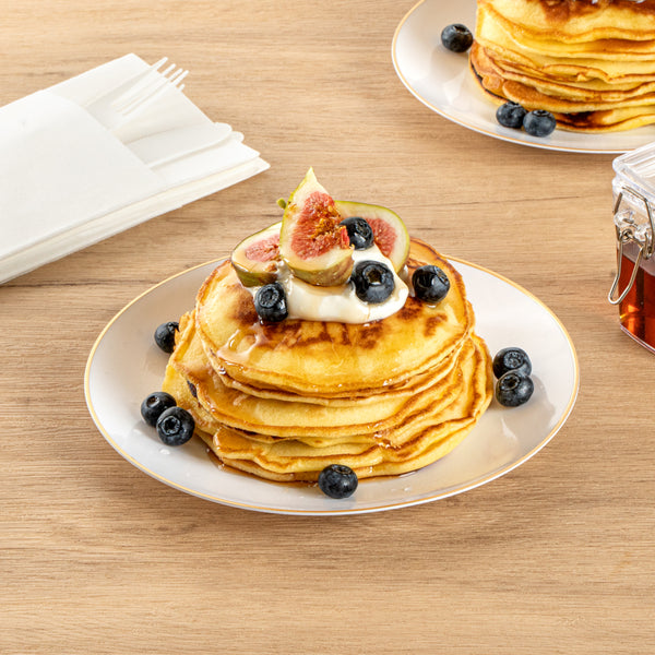 - Gold-rimmed design visually enhances the look of your tablescapes