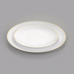 ROUND WHITE PLASTIC GOLD-RIMMED PLATE SET - INCLUDES 7" AND 10" PLATES