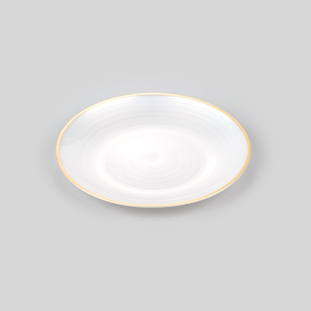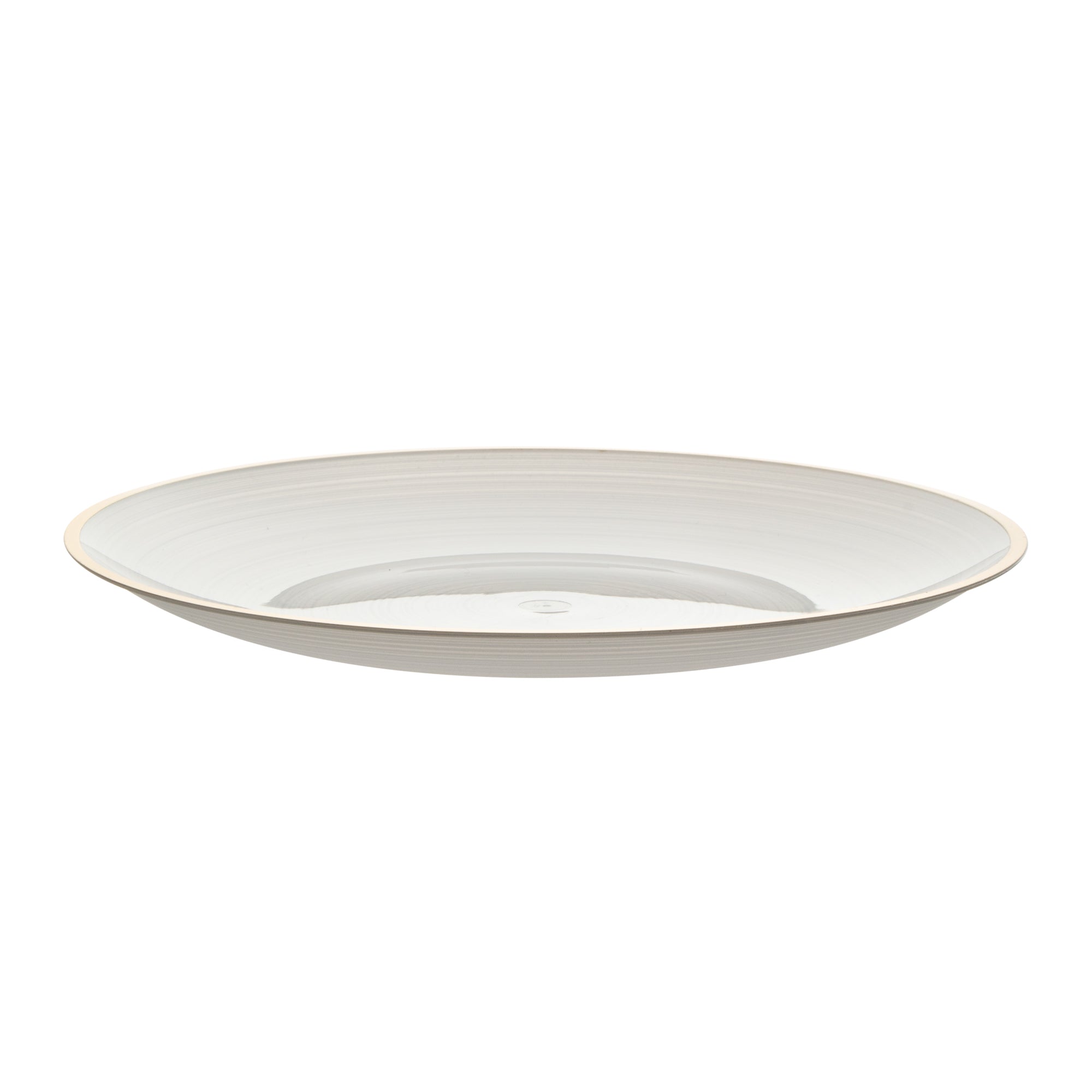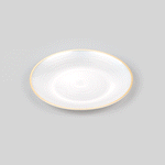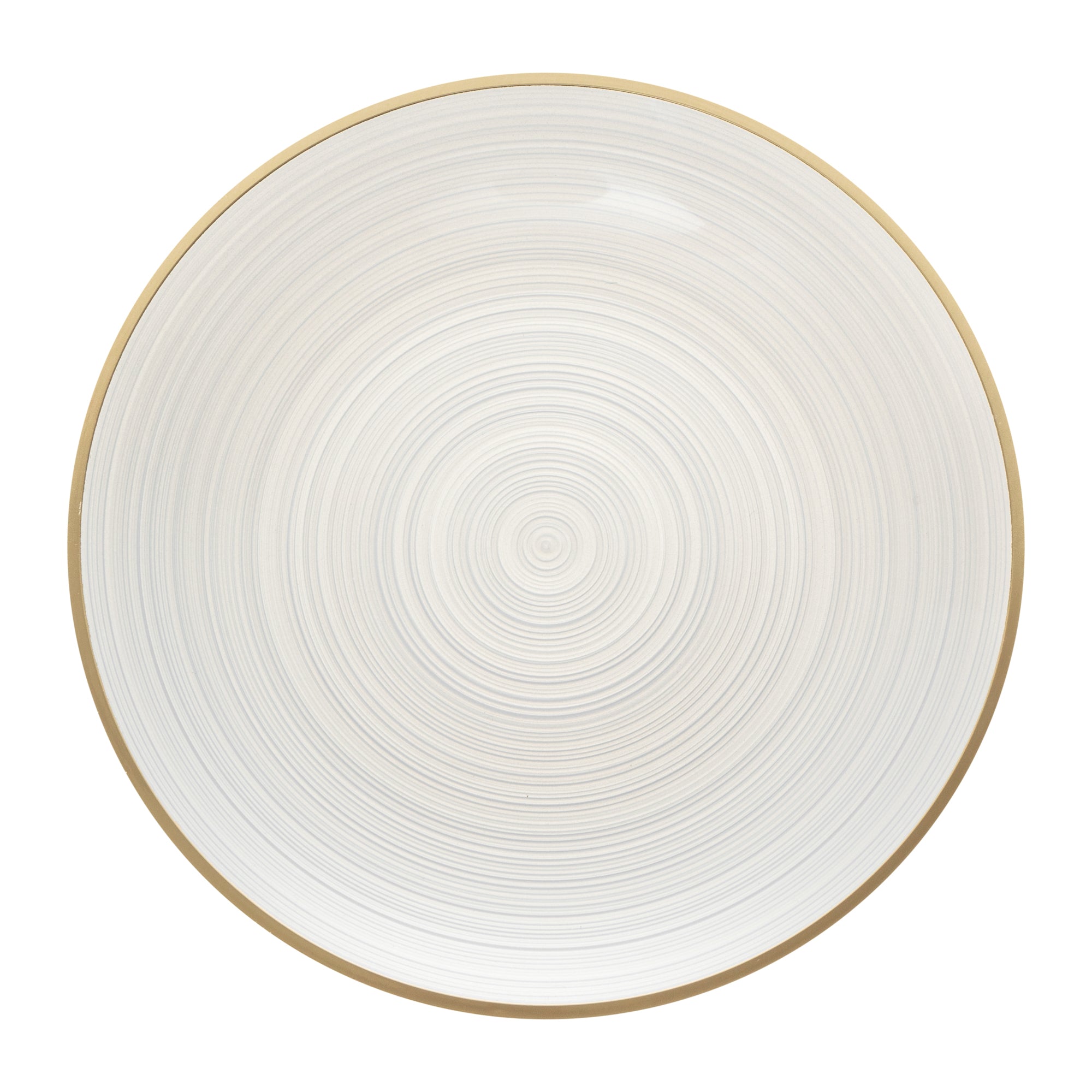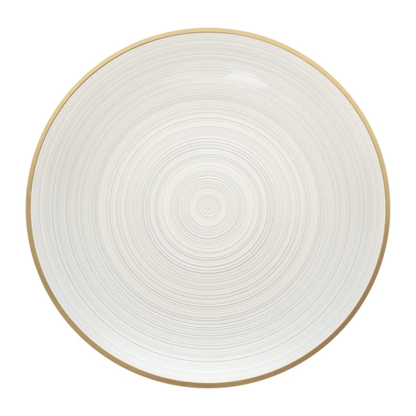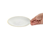 ROUND WHITE TRANSLUCENT PLASTIC GOLD-RIMMED PLATE - RIPPLED
