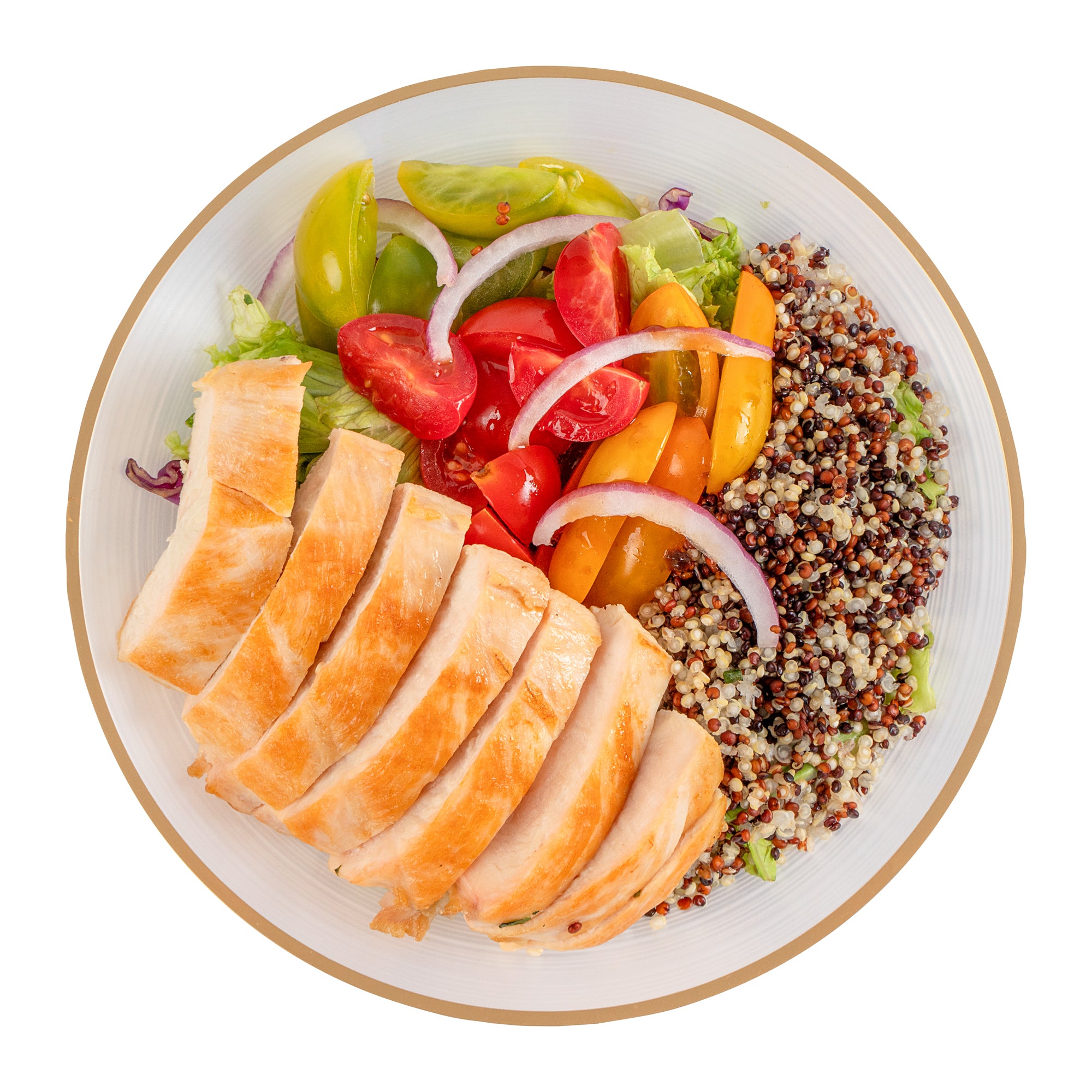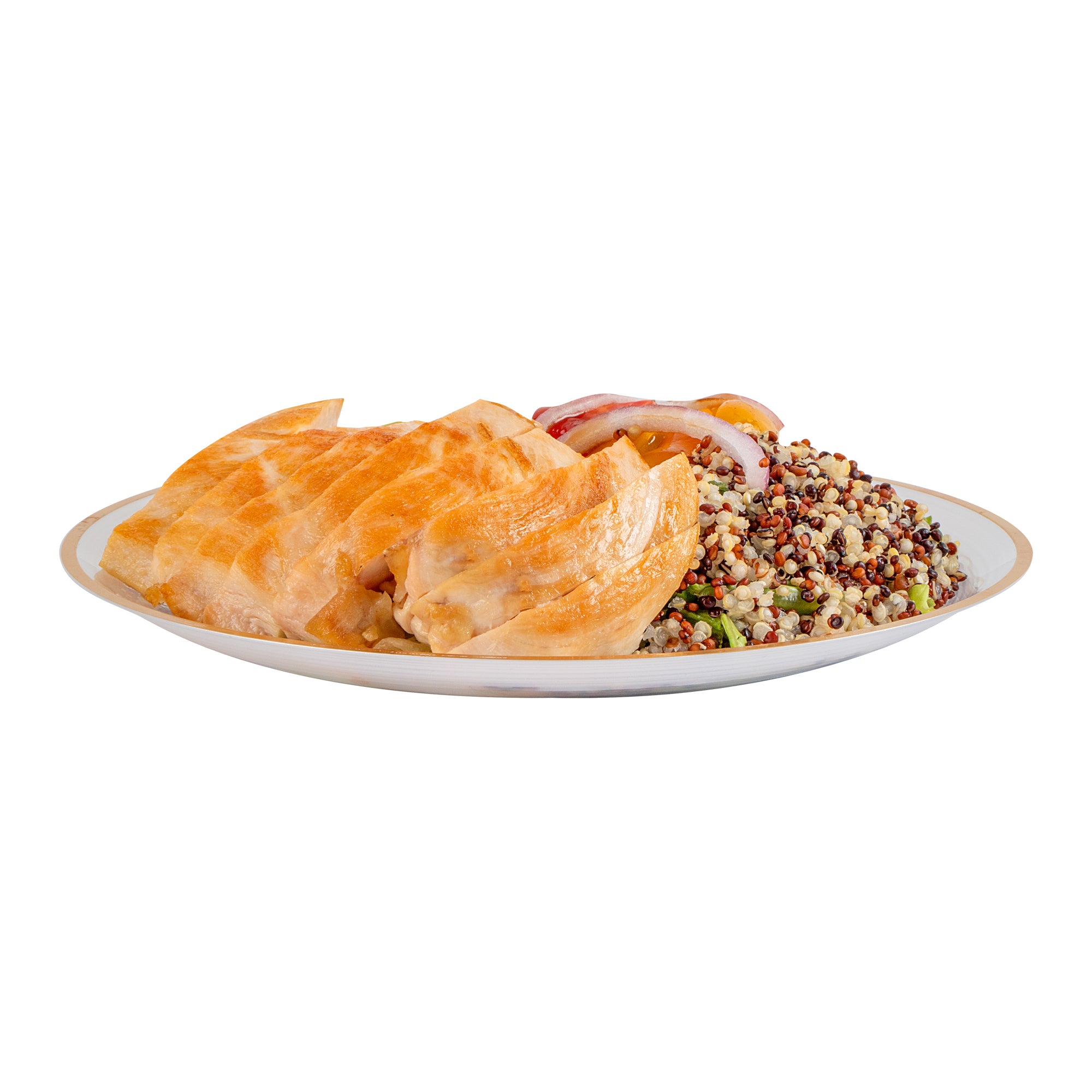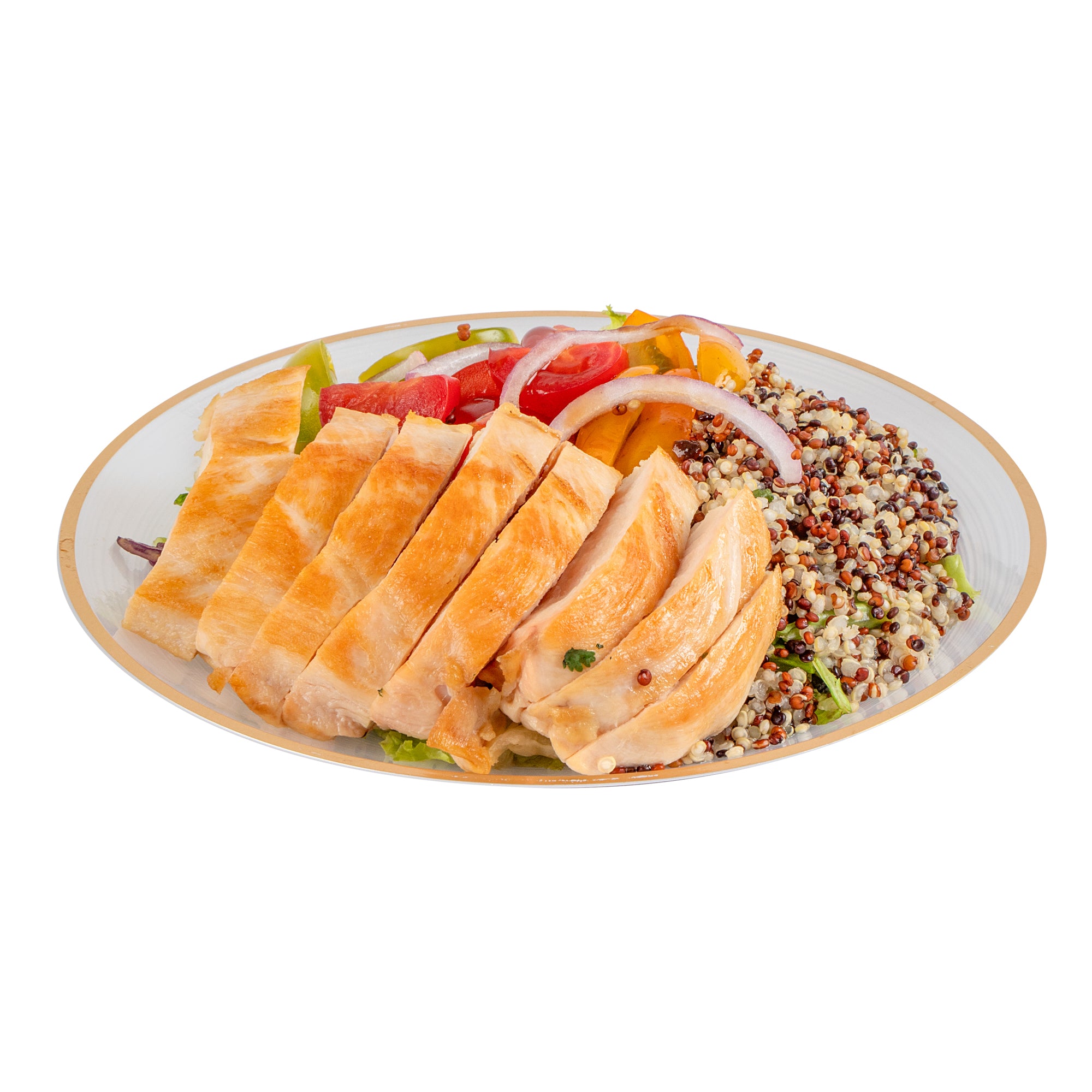 ROUND WHITE TRANSLUCENT PLASTIC GOLD-RIMMED PLATE - RIPPLED