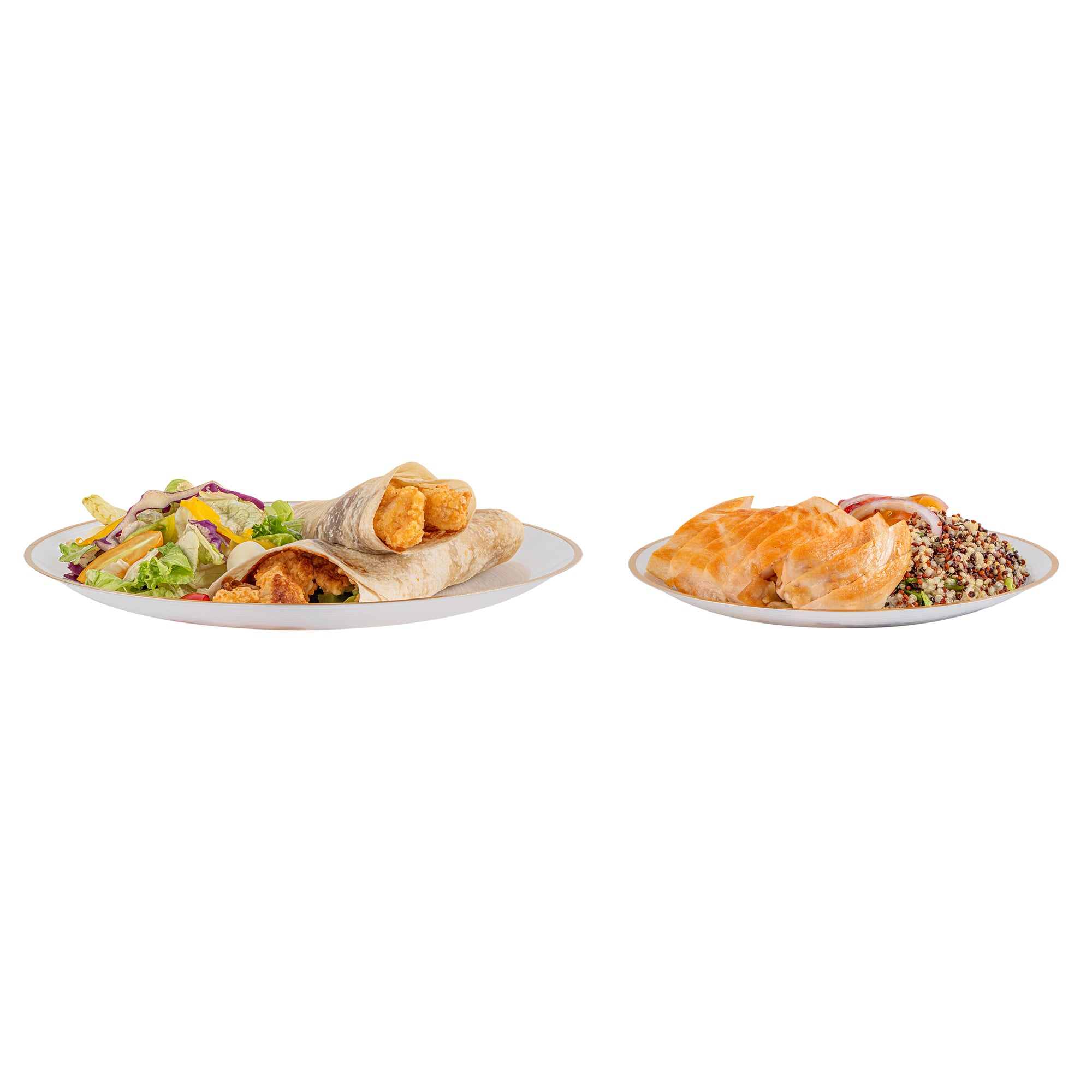 Elevate your next event with secure and elegant dining solutions. Moderna Crystal Design Plastic Combo Plates showcase a striking crystal design that enhances upscale event presentation, making them the perfect choice for weddings, corporate events, and sophisticated catering services. The rippled surface ensures a secure grip, facilitating easy handling and minimizing the risk of spills, which is essential for high-traffic occasions. With a stunning gold rim, these elegant disposable plates add a touch of refinement to any table setting, ideal for impressing guests. Constructed from durable, these plates are designed for reliability and longevity, providing peace of mind at large-scale dining events. Measuring 10.43 inches in length and width, they offer versatility with included 7.13-inch and 10-inch sizes for serving a variety of dishes. The disposable feature simplifies post-event cleanup, saving valuable time and labor costs. Upgrade your event effortlessly with these disposable wedding plates, perfect for any catering need. Each order includes 40 Moderna Crystal Design Plastic Combo Plates.