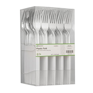 SILVER PLASTIC FORK - WITH WHITE HANDLE