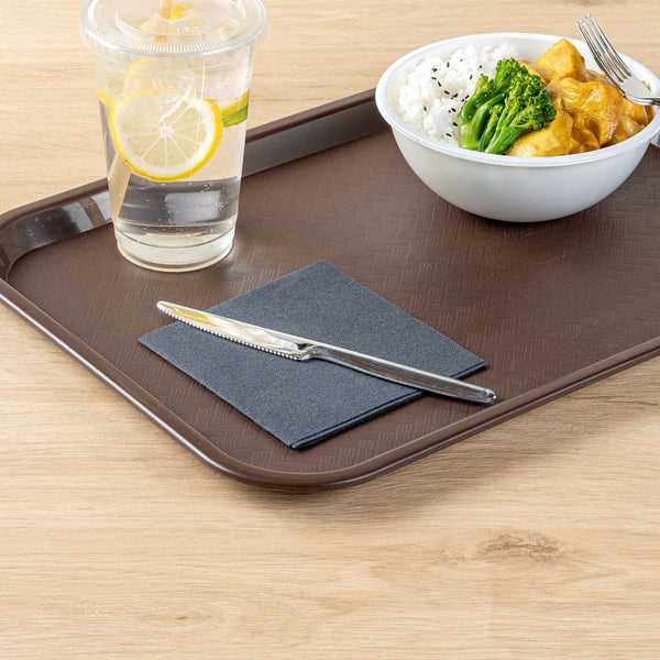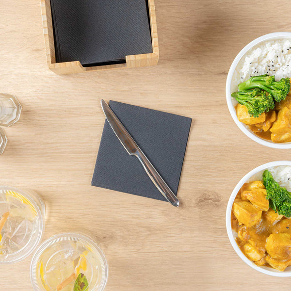 Cut through hefty bites with our Moderna Silver Plastic Knives. Featuring a realistic metallic finish, this heavy-duty silver plastic cutlery closely resembles the elegance of a silver knife. The serrated edges of these silver plastic knives enable quick and easy cutting. With their high-quality plastic construction, these serrated disposable knives stay strong for comfortable and efficient use. Finished with a sleek, rounded handle, this fancy plastic silverware feels comfortable to hold while slicing through tender steaks, fruits, or vegetables. Each disposable plastic knife is recyclable and reduces your carbon footprint. Measuring 7.25 inches in length, this premium plastic cutlery will elevate your table setting. Sold in a 250 count box.