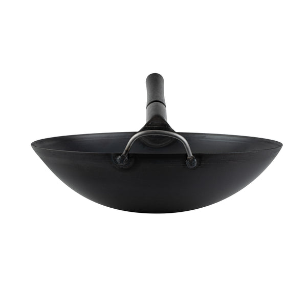 14" BLACK CARBON STEEL ROUND BOTTOM WOK / STIR FRY PAN - PRE-SEASONED