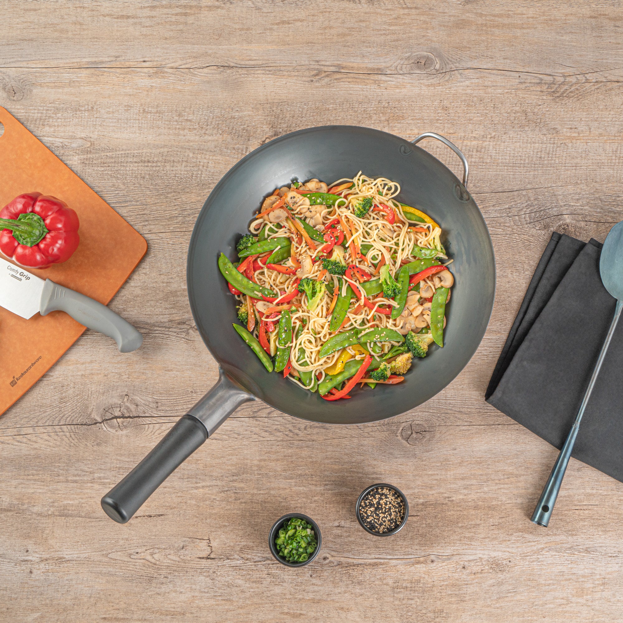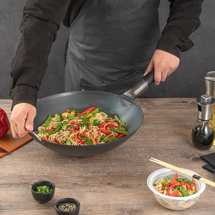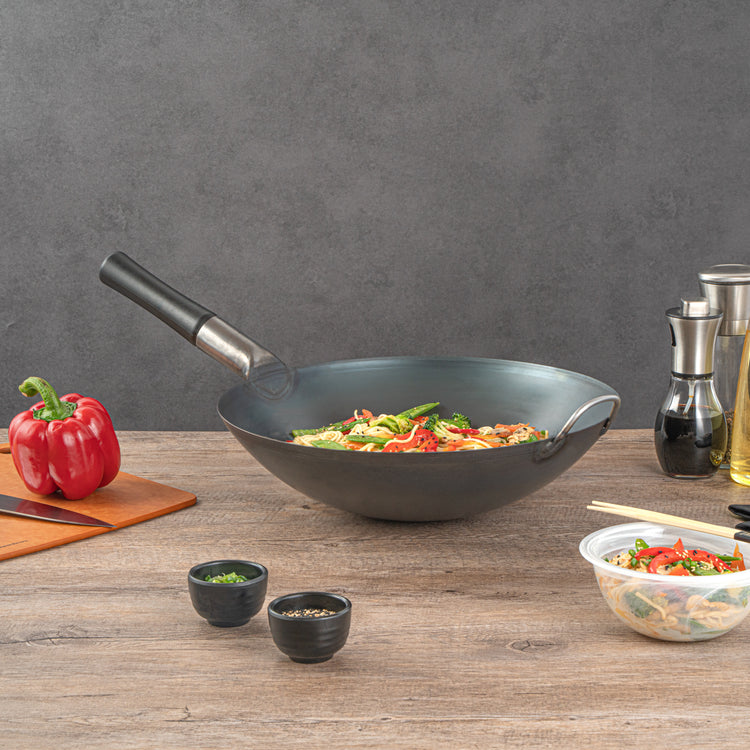 These premium woks are crafted in black carbon steel, catering to your cooking preferences. With options for both flat-bottomed and round-bottomed designs, they seamlessly match your stovetop. Select the ideal wok to elevate your culinary journey, tailored to your unique cooking style and preferences.