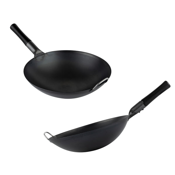 Made from durable carbon steel, these Chinese woks ensure even heat distribution and can withstand high heat. Perfectly cook authentic meals!