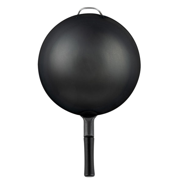 14" BLACK CARBON STEEL ROUND BOTTOM WOK / STIR FRY PAN - PRE-SEASONED