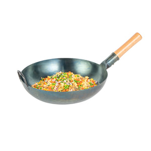 Featuring an additional helper handle, these authentic woks ensure secure handling and easy lifting. This makes them convenient for both cooking and storage, providing added versatility and ease of use in the kitchen.
