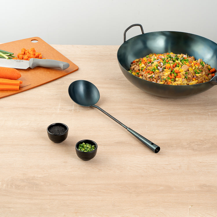 BLUE CARBON STEEL WOK LADLE - PRE-SEASONED
