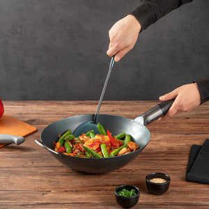 These wok spatulas come in a choice of stainless steel or pre-seasoned carbon steel, offering strength and versatility for all your cooking needs. Perfect for both home and commercial kitchens!