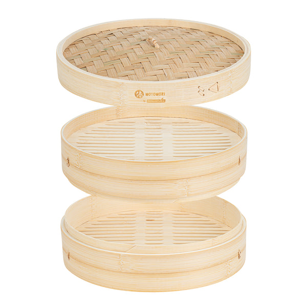 Prepare authentic Asian cuisine with our Motomori Round Natural Bamboo Steamer. This bamboo steamer set consists of a lid and a steamer, providing a hassle-free and efficient cooking adventure. This Chinese steamer comes with an attached handle for easy maneuvering, simplifying your kitchen process. Manufactured from durable bamboo, this dumpling steamer is a multiple-use solution that is biodegradable and commercially compostable. To achieve optimal steaming performance, rinse and soak this bao bun steamer for around 30 minutes prior to use, ensuring uniform steam circulation during cooking. This steamer basket can be positioned approximately 2 inches above the water in a wok and lined with parchment paper to prevent flavor transfer into the bamboo. To preserve the condition of this bamboo dumpling steamer, clean it with warm water without any soap or detergents and let it dry completely before storage. Store this dim sum basket in a properly ventilated spot for freshness and readiness for your upcoming culinary endeavors. Measuring 12 inches in diameter by 4 inches in height, this bamboo steamer offers ample room to prepare a plethora of Asian delicacies. Sold in a 1 count box. This item will only degrade outside of the traditional solid waste stream.