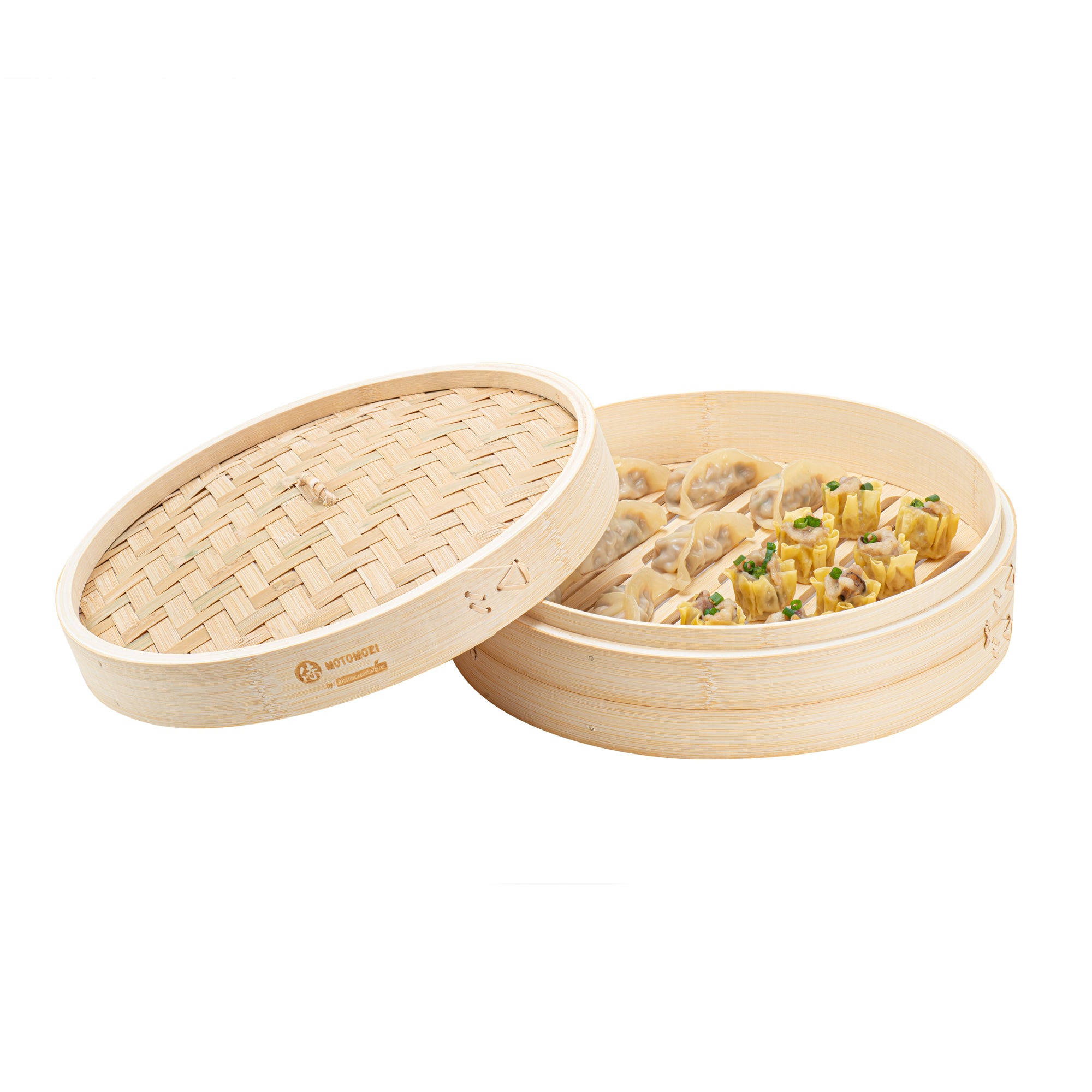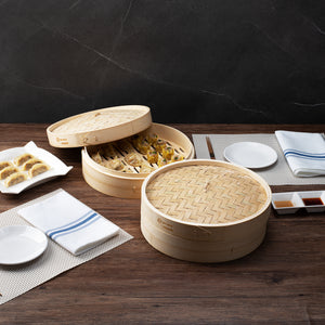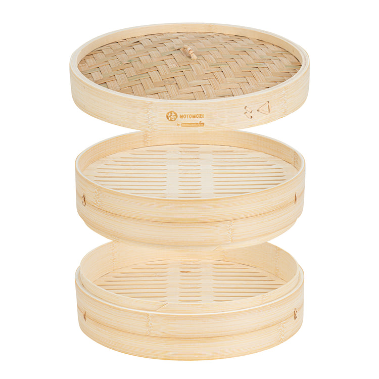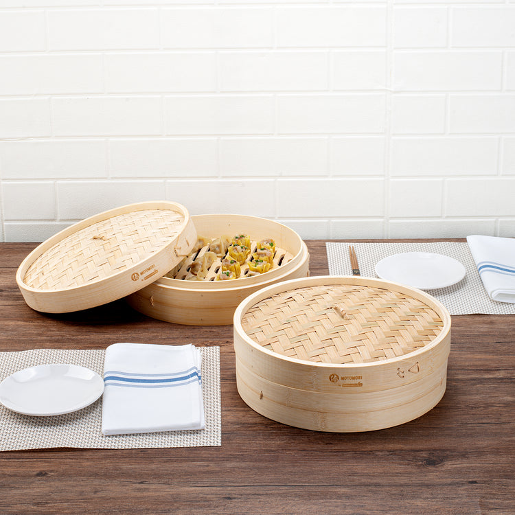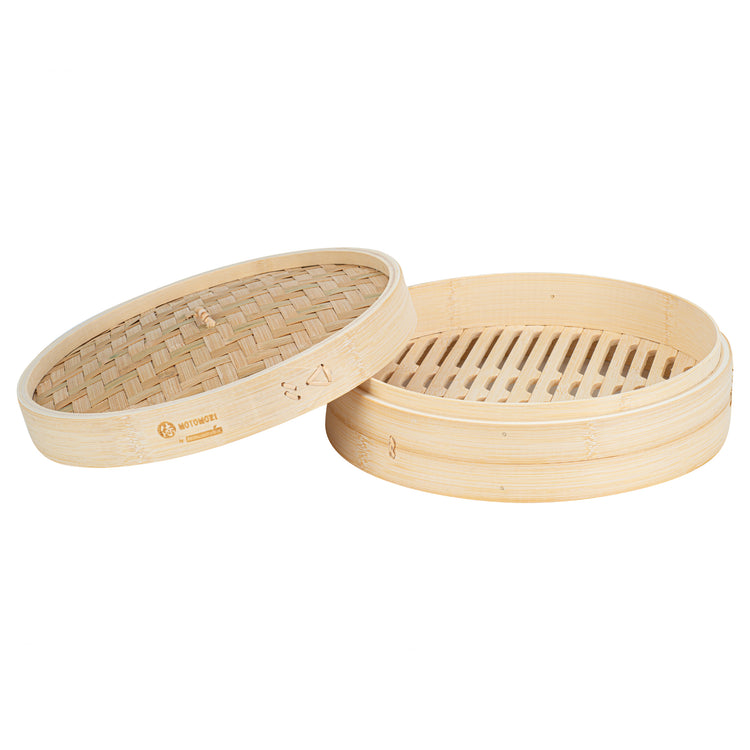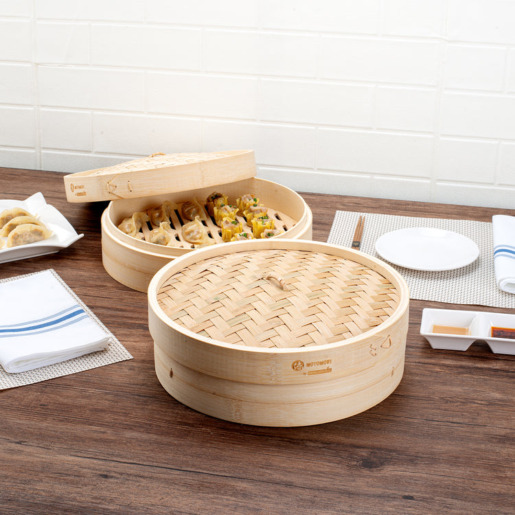 Prepare authentic Asian cuisine with our Motomori Round Natural Bamboo Steamers. Each bamboo steamer set consists of a lid and steamer, providing a hassle-free and efficient cooking adventure. These Chinese steamers come with attached handles for easy maneuvering, simplifying your kitchen processes. Manufactured from durable bamboo, these dumpling steamers are a multiple-use solution that is biodegradable and commercially compostable. To achieve optimal steaming performance, rinse and soak these bao bun steamers for around 30 minutes prior to use, ensuring uniform steam circulation during cooking. These steamer baskets can be positioned approximately 2 inches above the water in a wok and lined with parchment paper to prevent flavor transfer into the bamboo. To preserve the condition of these bamboo dumpling steamers, clean them with warm water without any soap or detergents and let them dry completely before storage. Store these dim sum baskets in a properly ventilated spot for freshness and readiness for your upcoming culinary endeavors. Measuring 12 inches in diameter by 4 inches in height, these bamboo steamers offer ample room to prepare a plethora of Asian delicacies. Sold in a 10 count box. These items will only degrade outside of the traditional solid waste stream