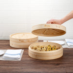 Prepare authentic Asian cuisine with our Motomori Round Natural Bamboo Steamers. Each bamboo steamer set consists of a lid and steamer, providing a hassle-free and efficient cooking adventure. These Chinese steamers come with attached handles for easy maneuvering, simplifying your kitchen processes. Manufactured from durable bamboo, these dumpling steamers are a multiple-use solution that is biodegradable and commercially compostable. To achieve optimal steaming performance, rinse and soak these bao bun steamers for around 30 minutes prior to use, ensuring uniform steam circulation during cooking. These steamer baskets can be positioned approximately 2 inches above the water in a wok and lined with parchment paper to prevent flavor transfer into the bamboo. To preserve the condition of these bamboo dumpling steamers, clean them with warm water without any soap or detergents and let them dry completely before storage. Store these dim sum baskets in a properly ventilated spot for freshness and readiness for your upcoming culinary endeavors. Measuring 12 inches in diameter by 4 inches in height, these bamboo steamers offer ample room to prepare a plethora of Asian delicacies. Sold in a 10 count box. These items will only degrade outside of the traditional solid waste stream