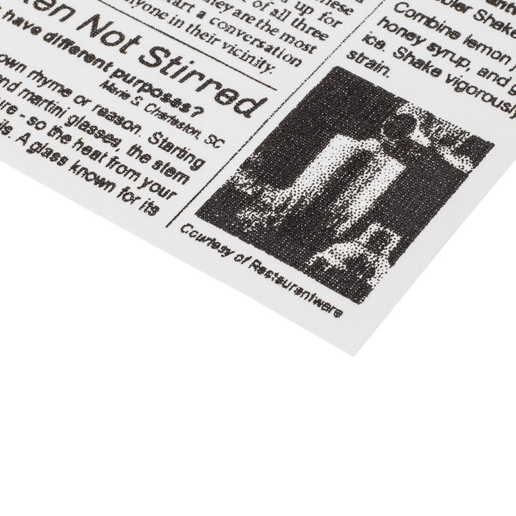 - Newsprint finish elevates the presentation of cocktails, adding a pop of color and style