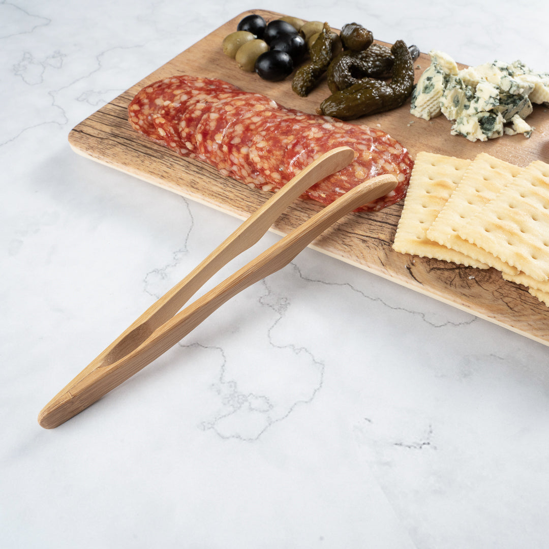 Our Bambuddha Natural Bamboo Curved Tongs provide you with a mess-free way to serve dishes. With a curved tip, these 7-inch tongs allow you to effortlessly pick up foods and precisely plate them. These disposable tongs are commercially compostable and biodegradable, providing you with an eco-friendly to serve dishes and dispose of tongs after use. Featuring a natural bamboo finish, these curve tongs add an elegant touch to your self-serve stations while complementing your serving tools. Each serving tong measures 7 inches in length and provides you with an effortless way to plate breakfast spreads or charcuterie platters. Shipped in a 100 count box. This item will only degrade outside of the traditional solid waste stream. These food tongs are intended for single use but can be handwashed and lightly reused.