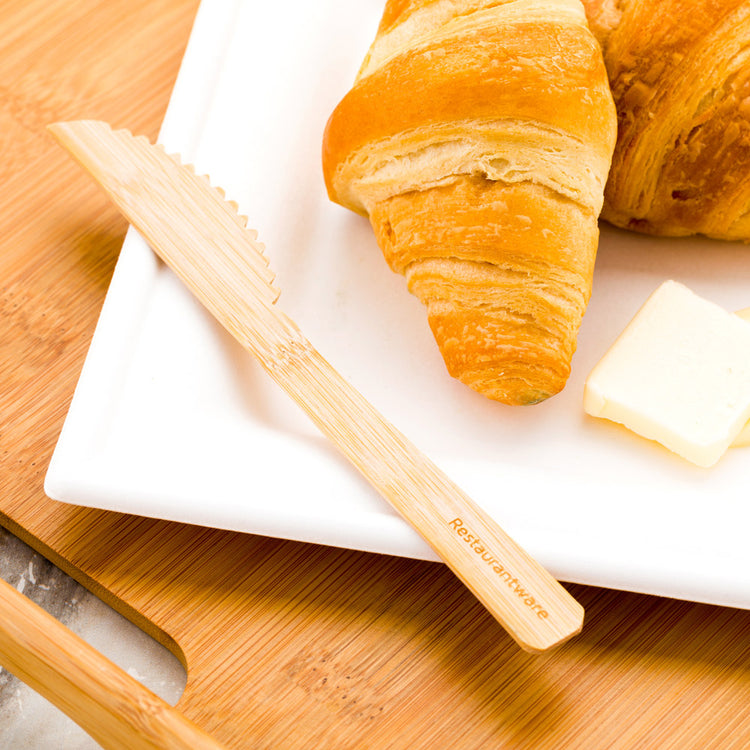 Bring a charming touch to your catered event with our Bambuddha Natural Bamboo Disposable Knives. Crafted from natural bamboo, these bamboo silverware are an excellent alternative to traditional disposable knives. These bamboo utensils are commercially compostable to reduce your carbon footprint. With durable construction, these premium recyclable bamboo knives do not break, avoiding splinters and accidental cuts. These disposable cutleries feature a natural finish that effortlessly complements the rustic decor at your cafe, fast-casual restaurant, or other foodservice establishment. Conveniently disposable, these biodegradable utensils are the perfect way to save time when cleaning up after an event or closing at your establishment. These charming knives measure 6.75 inches long. Shipped in a 500 count box. This item will only degrade outside of the traditional solid waste stream.
