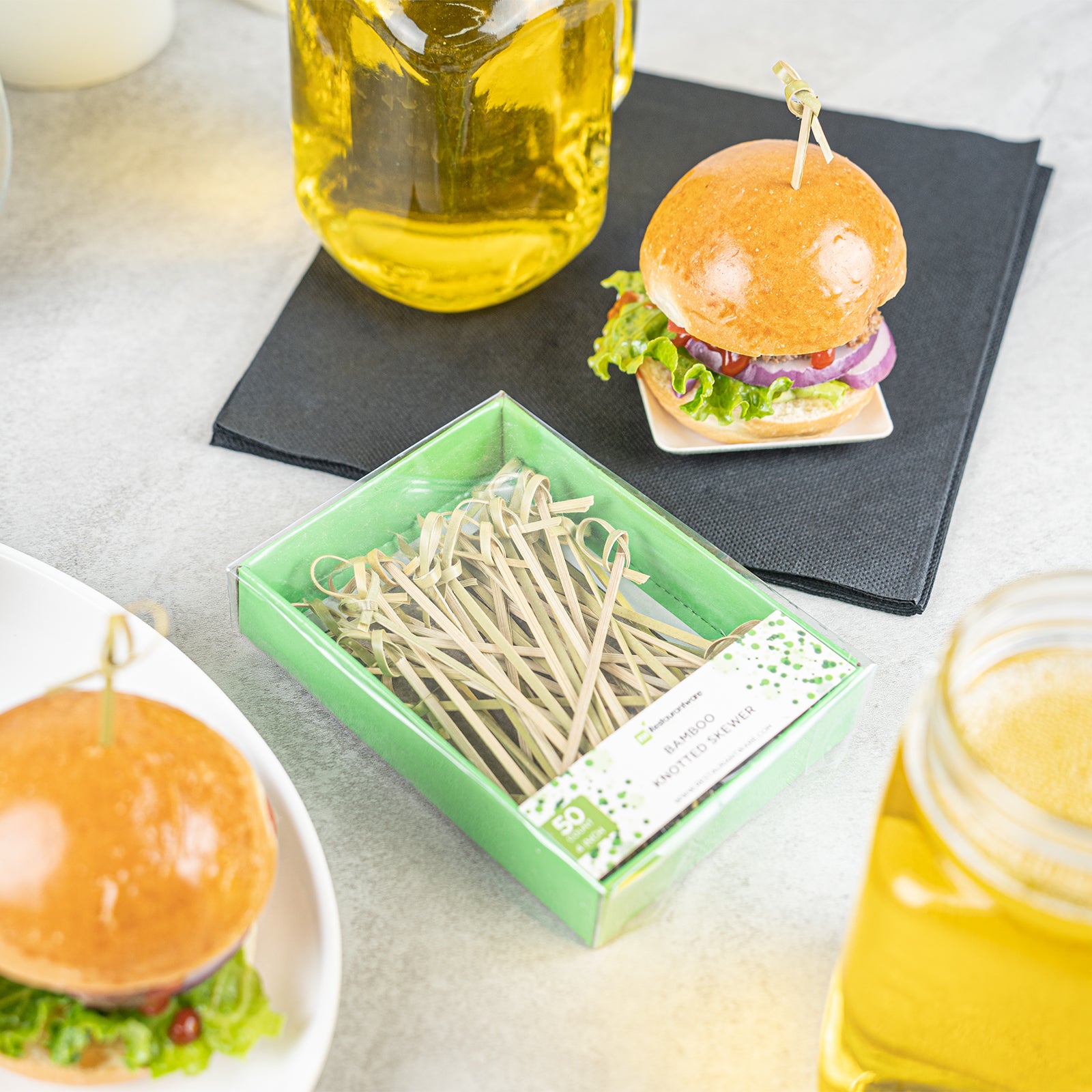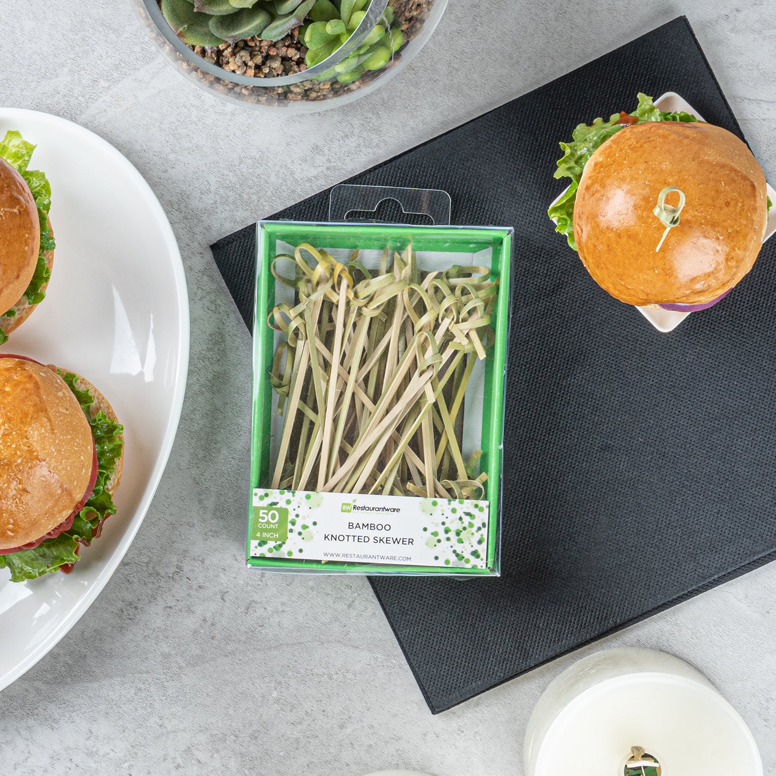 Whether you’re looking to bring a one-of-a-kind look to cocktail garnishes or appetizers, our knotted and paddle skewers are available in a number of sizes to fit your presentation needs. Choose from 2.5-inch skewers to 11.5-inch skewers.