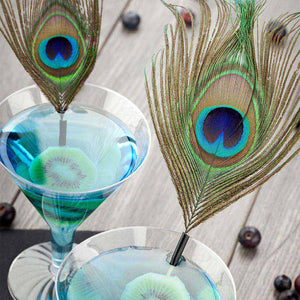 • Peacock feather adds bohemian flair to cocktail garnishes and tablescapes