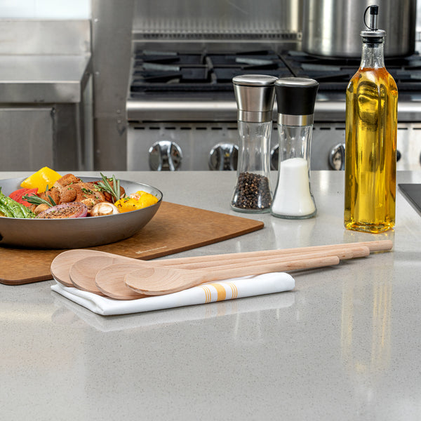 Enhance your kitchen efficiency with versatile beechwood spoons. Nature Tek Greaseproof Wooden Cooking Spoons are crafted from durable, lightweight beechwood, making them great for stirring sauces and soups without scratching nonstick cookware. These wooden cooking spoons come in four sizes, providing flexibility for various kitchen tasks and ensuring the perfect fit for any culinary challenge. Their hot food-friendly design is ideal for soups and sauces, while the greaseproof finish is perfect for handling oily or buttery foods without a mess. Their biodegradable and compostable nature aligns with sustainable practices, making them a responsible choice for eco-conscious kitchens. Elevate your kitchen's functionality with a utensil that balances practicality and sustainability. Each order includes 100 Nature Tek Greaseproof Wooden Cooking Spoons.