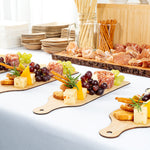 Stylishly serve appetizers and bite-sized treats with our Nature Tek Bamboo Disposable Cheese / Charcuterie Boards. These disposable charcuterie boards are made of natural bamboo that is commercially compostable and biodegradable to provide an eco-friendly option to serve your dishes. These bamboo charcuterie boards are grease-resistant to maintain their classy presentation. The rectangular shape of these disposable charcuterie trays provides ample space to display mini meats, cheeses, or crackers. These disposable cheese boards have a lightweight construction and a built-in handle to easily pass out fare at catered events. For easy cleanup, these bamboo cheese boards are conveniently disposable. To elevate the aesthetic of your food presentation, these disposable cheese trays provide a rustic look. Perfect for small bites, this bamboo cheese tray measures 11.75 inches long by 3.5 inches wide. Sold in a 2 count box. This item will only degrade outside of the traditional solid waste stream.