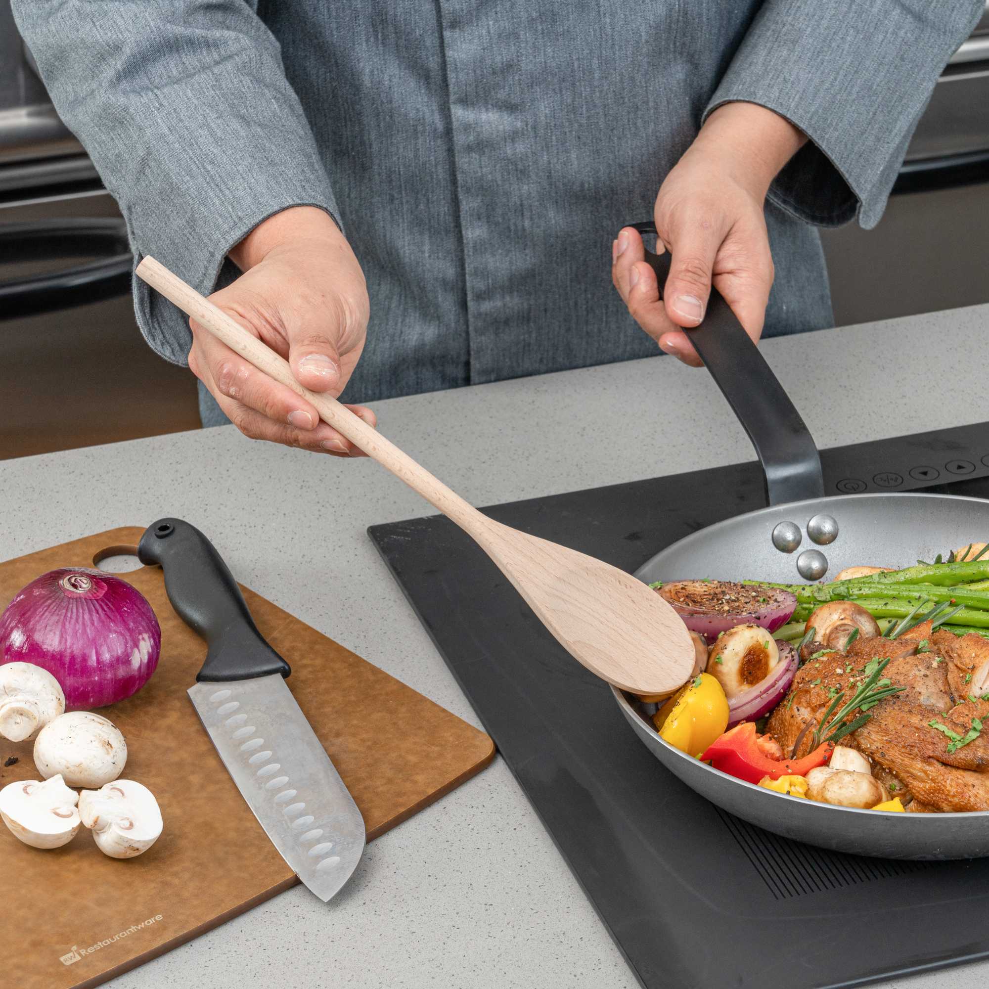 Stir with precision using eco-friendly tools in your kitchen. The Nature Tek Heat-Safe Wooden Spoon is expertly crafted from durable, lightweight beechwood, offering a scratch-resistant and comfortable grip for seamless cooking experiences. This wooden spoon is compostable and biodegradable, ensuring eco-friendly disposal that aligns with sustainable practices. Its 12-inch length is ideal for stirring large pots, making it a reliable wood cooking spoon for chefs handling sizable quantities. Designed to be hot food friendly, this mixing spoon for batters easily handles soups, sauces, and more without compromising safety or performance. With a long handle, it provides a comfortable hold that aids in precise stirring, even in non-stick cookware. Elevate your kitchen's efficiency with this sustainable solution. Each order includes 1 Nature Tek Heat-Safe Wooden Spoon.