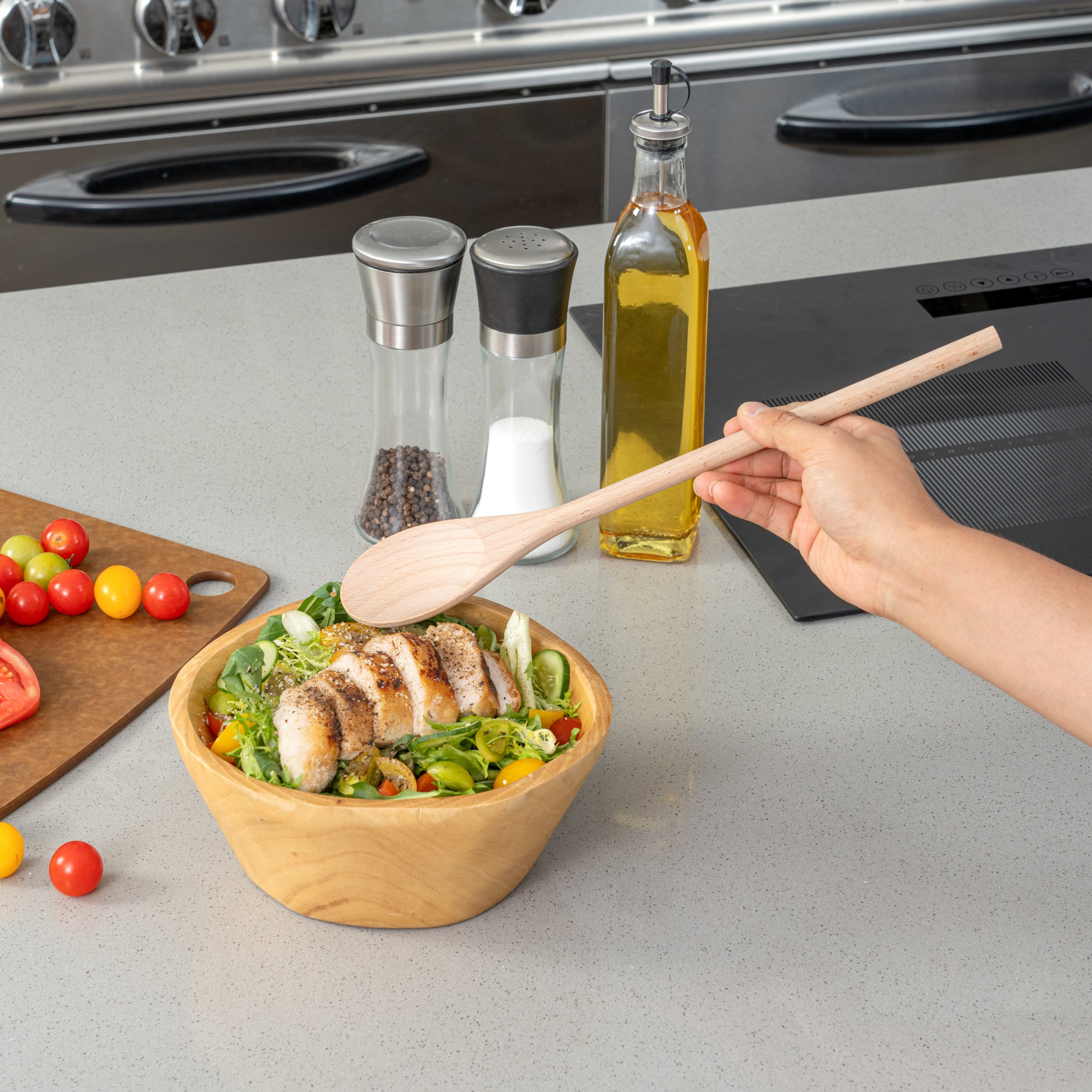Ensure safe stirring with a heat-resistant wooden cooking spoon. The Nature Tek Heat-Safe 14" Wooden Cooking Spoon combines with durable, lightweight beechwood, allowing chefs to stir deeply without risk in hot pots, making it an ideal choice for professional kitchens. Its greaseproof feature significantly reduces cleanup time, perfect for maintaining efficiency in busy culinary settings and enhancing the performance of this beechwood spoon. Additionally, the freezer-safe design of this stirring spoon for soups helps you preserve the freshness of sauces or broths, optimizing storage solutions in your kitchen. The spoon's 13.9-inch length and handle offer a comfortable grip, crucial for prolonged use when stirring batters or delicate sauces. Its nonstick-safe design prevents scratches on cookware surfaces, extending the life of your kitchen tools and elevating your cooking experience. Trust this biodegradable and compostable option to meet sustainability goals. Each order includes 100 Nature Tek Heat-Safe Wooden Cooking Spoons.