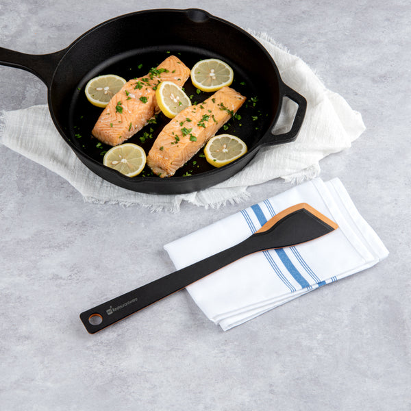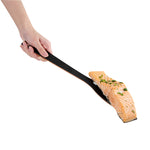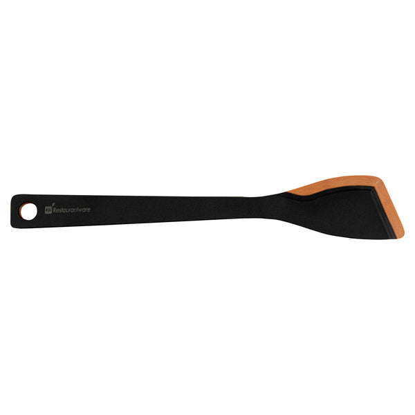 Turn over your hefty patties easily by using our Tek Black Wood Angled Spatula. The supreme quality of this pine wood, angled spatula makes it sturdy and virtually unbreakable. Featuring an angled edge, this wooden cooking spatula gets under pancakes, burger patties, crepes, or steaks smoothly, allowing you to turn it effortlessly. This flat wooden spatula has a long handle and soft edges that can conveniently move in all directions without scratching your pans. The hanging hole of this wooden turner spatula provides simple storage and quick access for saving space in your kitchen. This wooden spatula spoon can endure heat while cooking without burning your hands. Made from pine wood pulp, this angled wooden spatula is dishwashable and can be reused for a longer period. This nonstick wooden angled spatula does not leach substances into food, retaining the original flavors of your dishes. Measuring 13 inches in length by 2.5 inches in width, this wooden spatula for cooking is the perfect size for your cooking tasks. Shipped in a 1 count box.