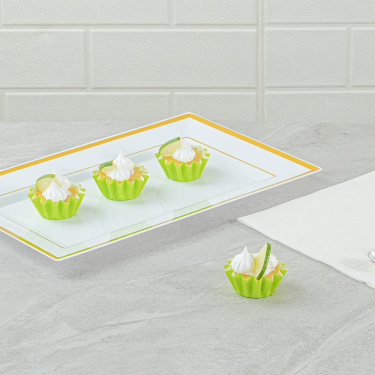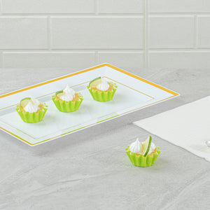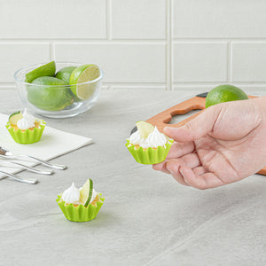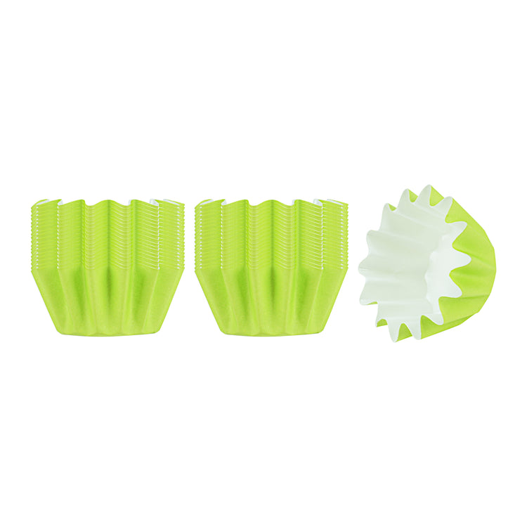 Enhance your baking presentation with grease-resistant convenience. The Panificio Grease-Resistant Mini Baking Cup features a specialized coating that ensures your treats release effortlessly, making it an essential tool for any bakery or home kitchen. With heavyweight paper construction, these mini baking cups withstand oven temperatures up to 425 degrees Fahrenheit, providing a reliable solution for your oven-safe cupcake liner needs. The flared design beautifully accentuates baked goods, allowing your creations to stand out at any event. Each disposable muffin cup is crafted from green paper, adding a pop of color to your display while ensuring easy cleanup after every use. Measuring 2 inches in length and width with a height of 0.6 inches, these cups are perfect for serving small portions of your delicious treats. Elevate your baking with confidence and style with these essential baking accessories. Sold in a 200 count box.